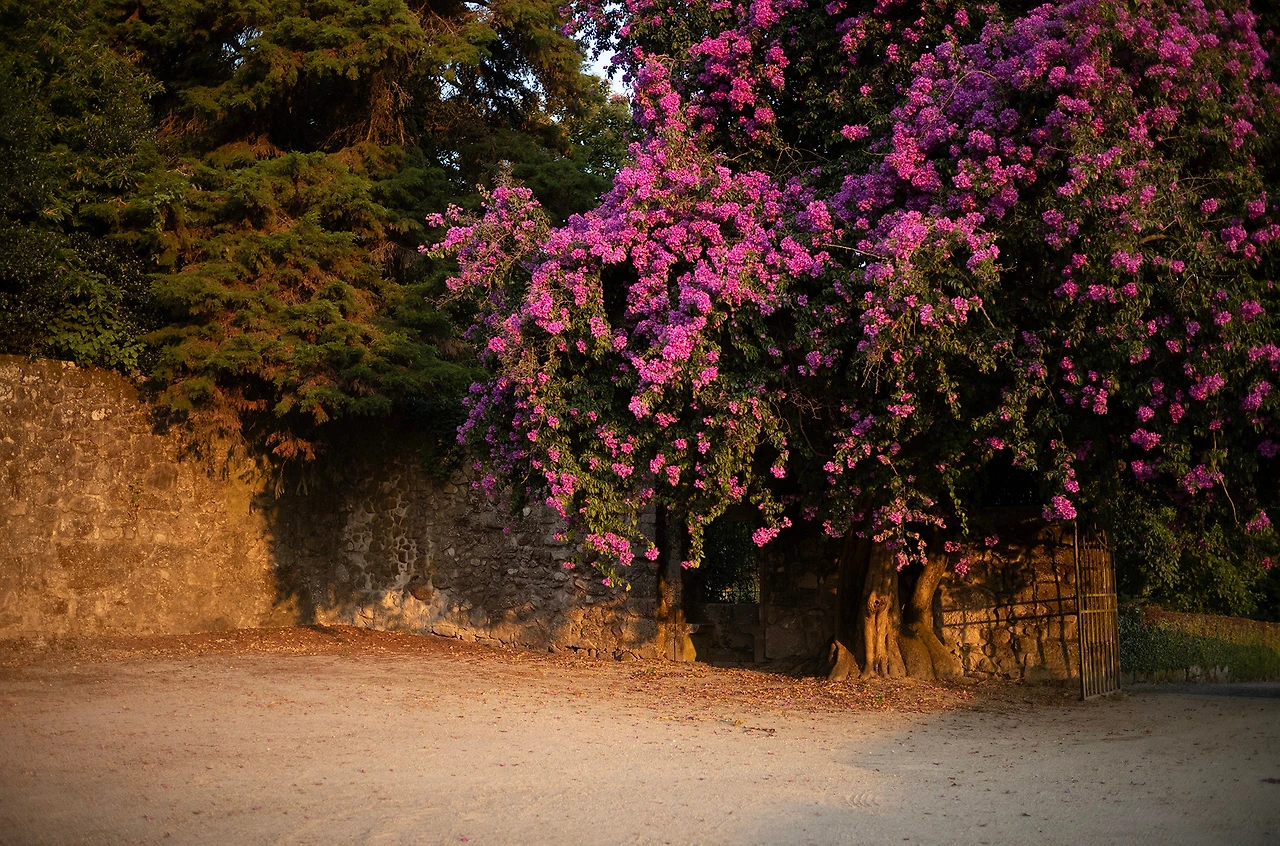 왼쪽 사진: 포르토의 오월에서 유월은 온 시내가, 아니 온 세상이 이 쟈카란다(Jacaranda) 나무의 보랏빛으로 물들어 있다 해도 과언이 아니다. 우리가 묵었던 빌라의 게이트 전경이다.