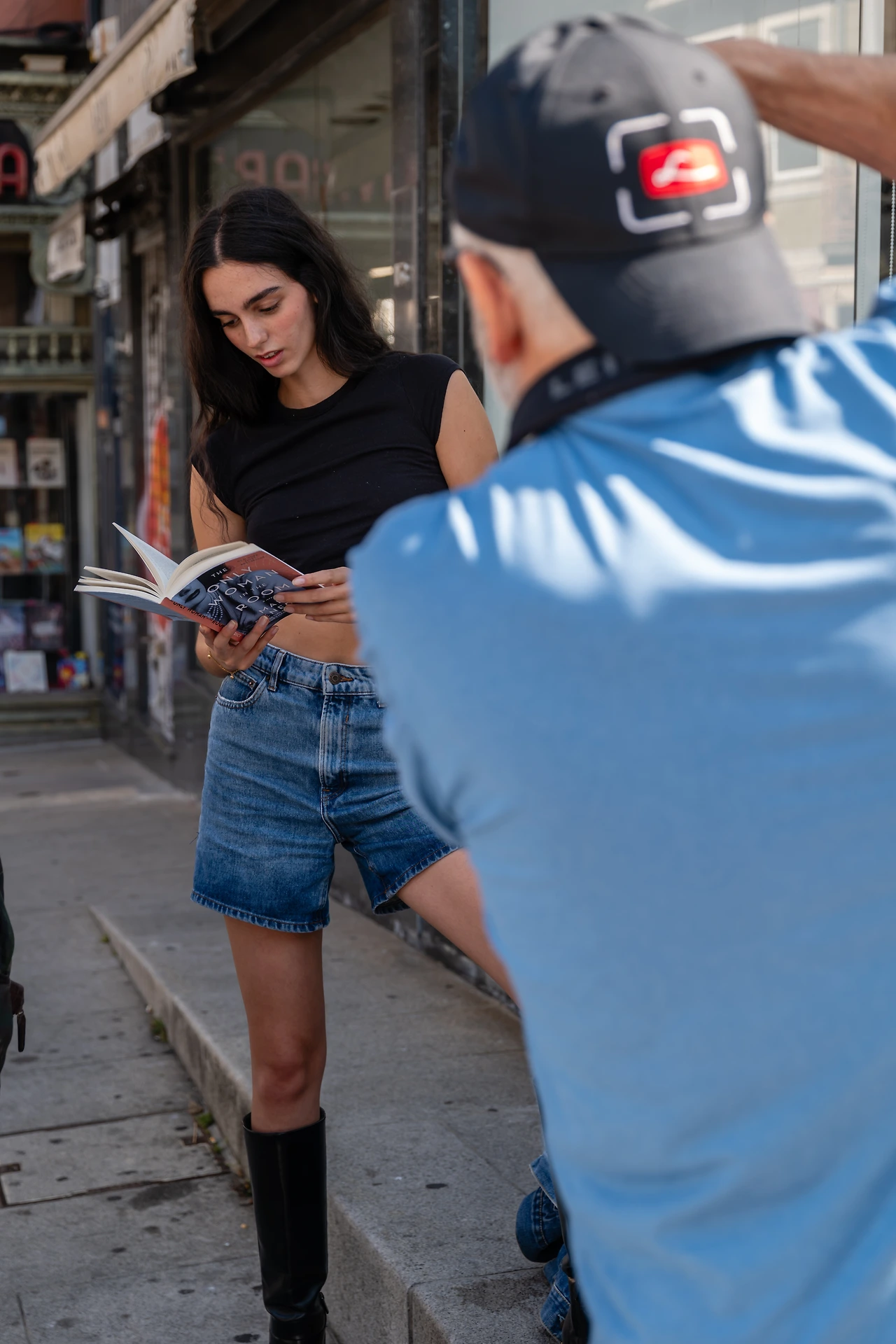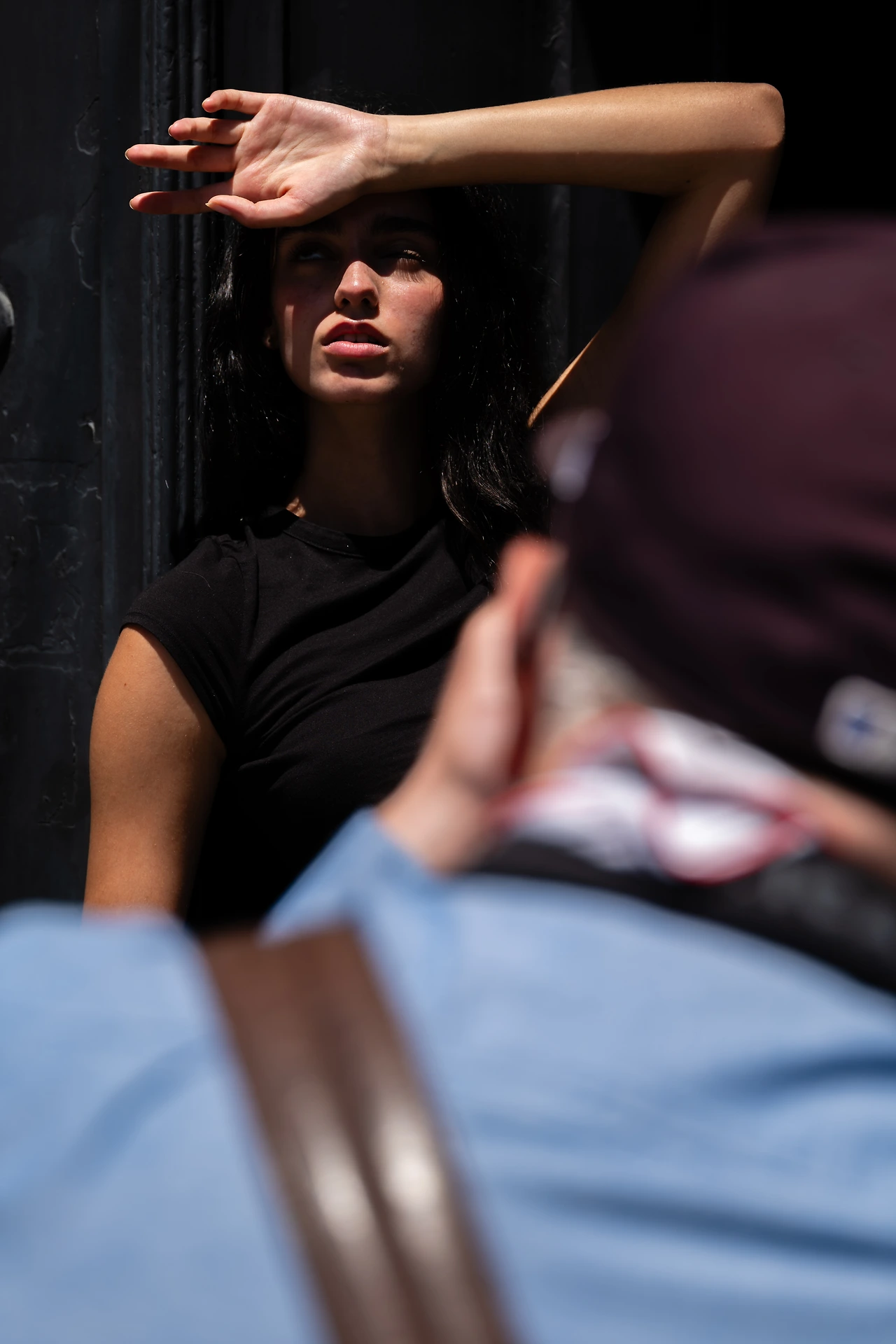 사진설명: 위 오른쪽 사진이 이 촬영에서 내가 젤 좋아하는 이미지인데 모델을 가게 안으로 들어가서 (왼쪽이 들어가는 모습) 나를 바라보라고 하면서 찍은 컷이다. 이런 식으로 조리개를 활짝 열어놓고(F1.4) 손에 포커스를 맞추면 뒤의 얼굴이 아웃포커스가 되면서 사진에 레이어가 생기고 입체감이 난다는 것을 처음으로 알게 된 장면이다.