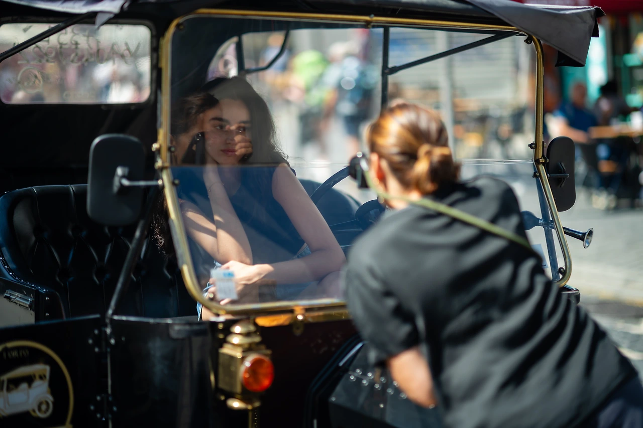 사람들이 계속 움직이는 시내에서의 촬영. 우선, 엄청 더웠다는 생각이 젤 먼저 난다. 게다가 서로서로 다르게 찍기 위해서는 배경을 어디로 잡느냐가 중요해서 별별짓을 다 했던 것 같다. 예를 들어 나는 성당으로 들어가는 입구가 닫혀서 못 들어가는 대신 모델을 펜스 옆에 세워 뒷배경이 마치 감옥의 철창처럼 세팅을 했고, 내 여자친구 S는 길거리에 파킹해 놓은 관광용 앤티크차를 전세 내어 모델을 차 안에 앉힌 다음 자동차 앞유리 너머로 그녀를 찍었다. 나의 두 번째 씬은 올리브유를 파는 가게 안에 들어가 물건을 몇 개 사고 가게의 모습을 촬영을 해도 되겠냐고 흥정을 한 다음 맘 편하게 찍기도 하였다.