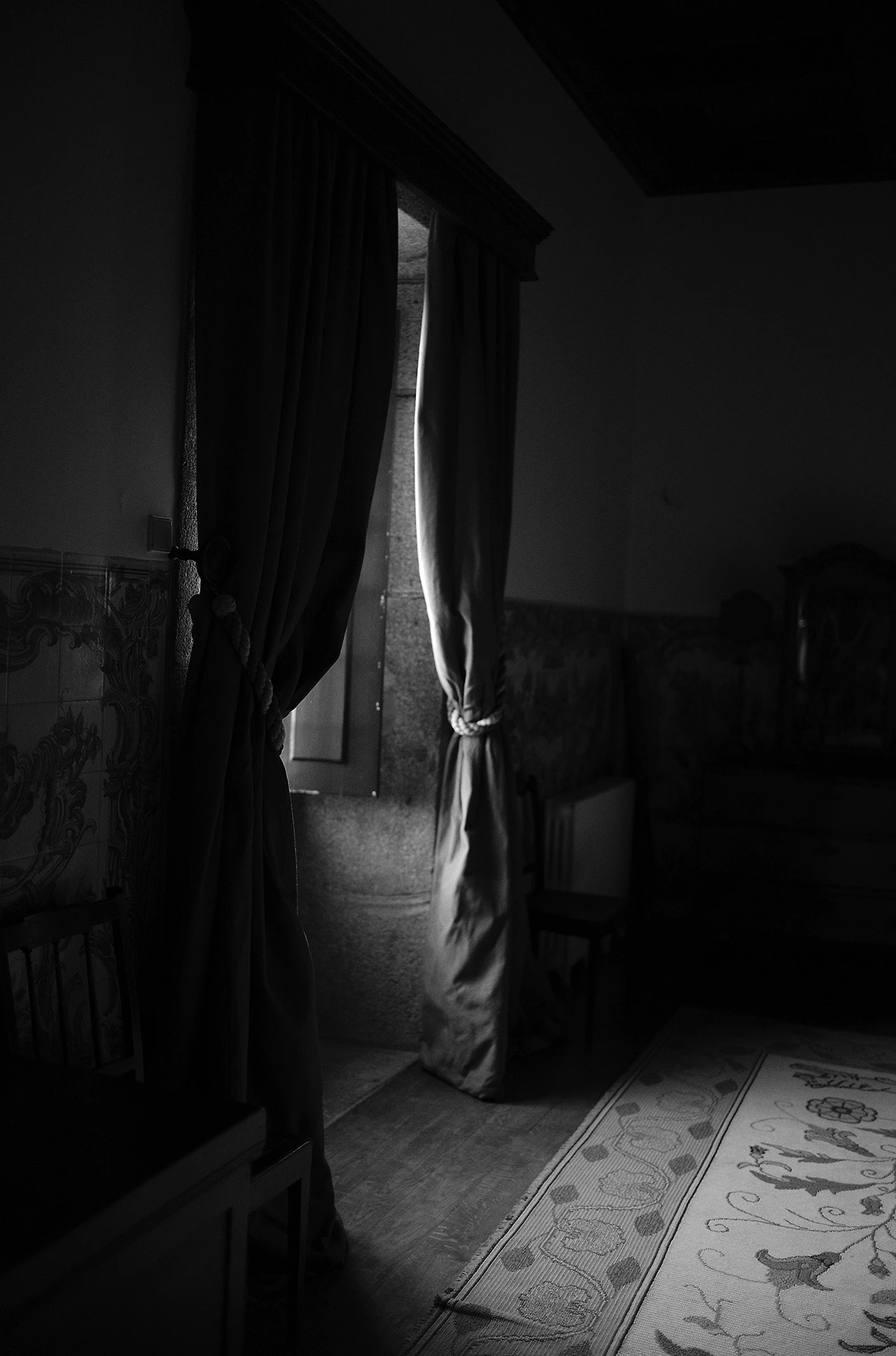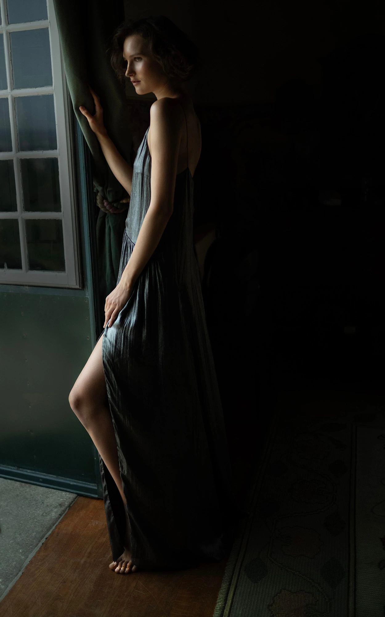 이 사진들은 대낮에 찍은 것들이지만 내가 그날 새벽에 보았던 드라마틱한 빛과 색채의 향연을 어느 정도 보여주고 싶었다. 특히 마지막 샷은 그녀를 일부러 발코니의 프렌치 윈도 바로 뒤에 서게 하여 빛의 명암을 강하게 대비시켰다. 그녀만의 비밀스러운 곳에서 밝은 빛을 바라보는 숨겨진 마음을 표현하고 싶었다고나 할까?