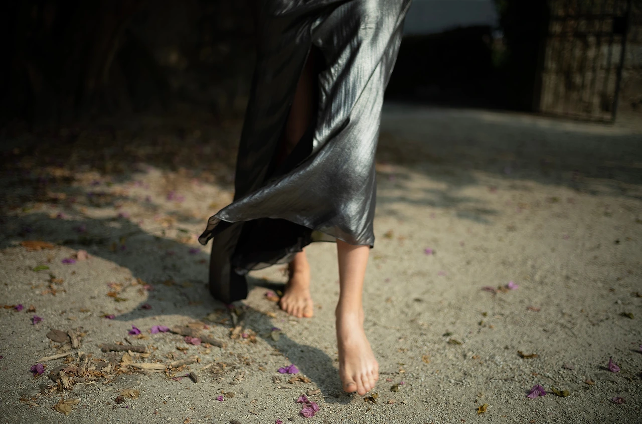 3. 정원의 쟈카린다 나무 아래서 뛰어오는 그녀