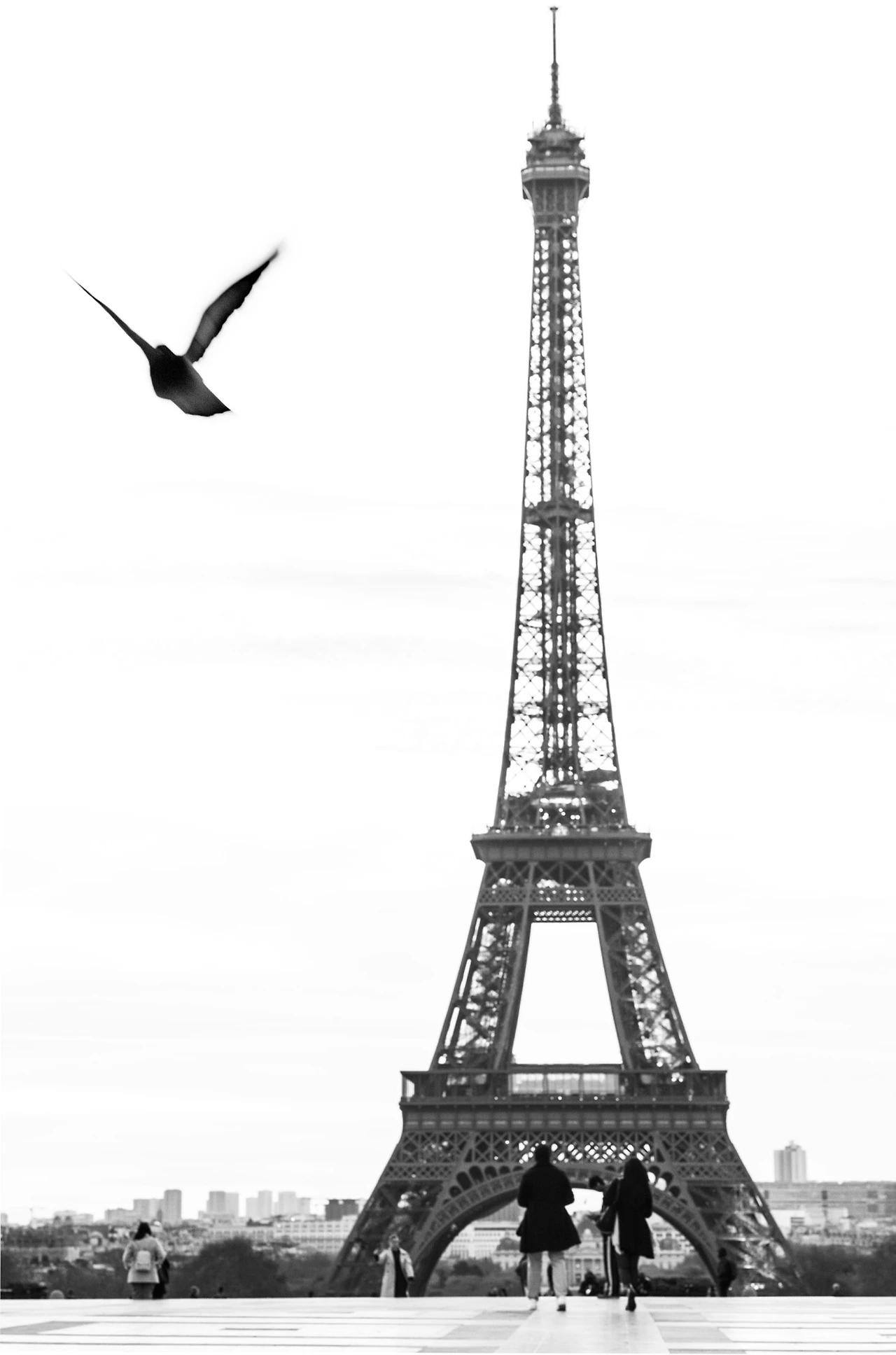 지난번 파리 여행에서 강하게 느꼈던 화두는 “사진에서의 우연성”입니다. 에펠탑 앞에서 찍었던 새가 나르는 장면도 거의 처음 써보는 75mm 렌즈를 테스트할 겸 들고 나섰다가 마음에 드는 장면 하나도 못 찍고 돌아서려는 순간에 갑자기 비둘기 한 마리가 “후더덕” 하고 튀어 오르는 소리만 듣고 그 방향으로 무조건 셔터를 눌렀지요. 저는, 에펠탑을 향해서 뛰어가는 두 여인도 에펠탑의 전신이 찍혔는지도 전혀 보지 못했습니다. Viewfinder에 눈을 맞출 사이도, 정신을 차릴 사이도 없는 1/250초의 시간이었으니까요.