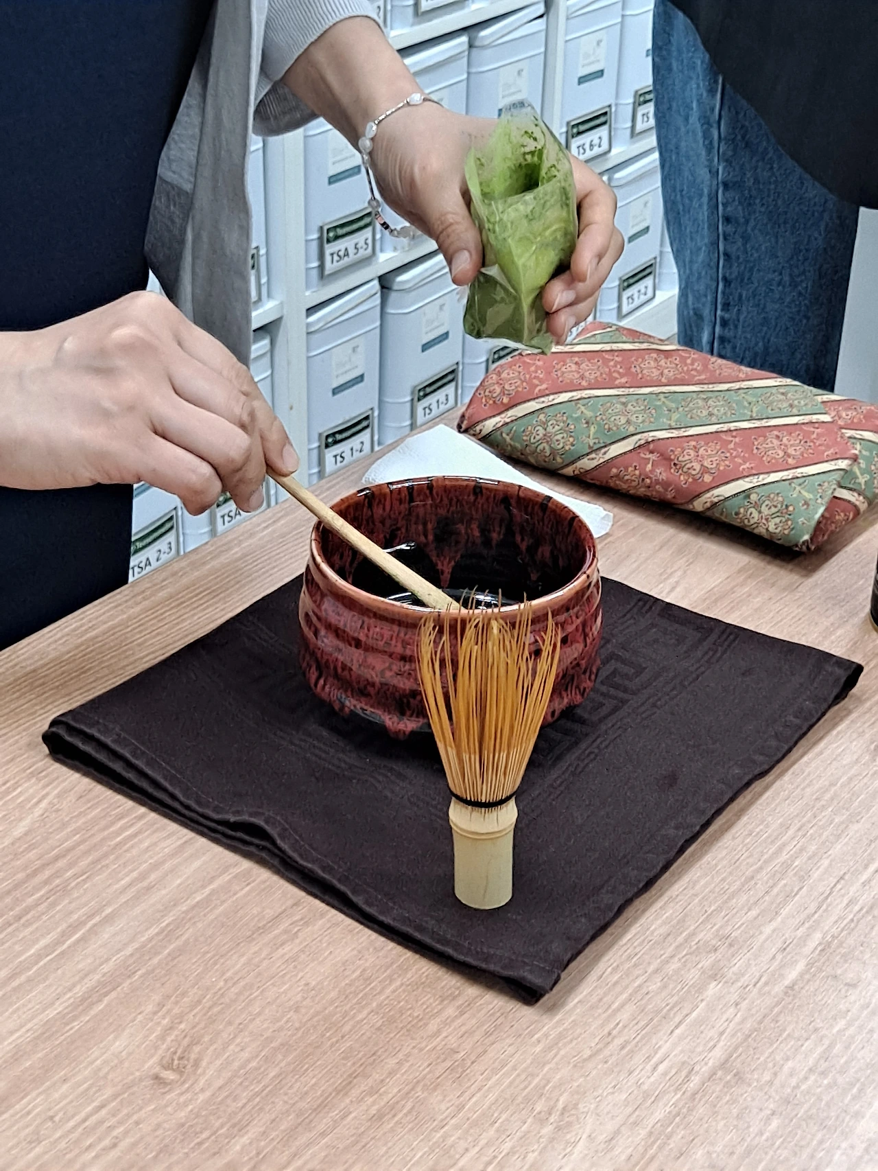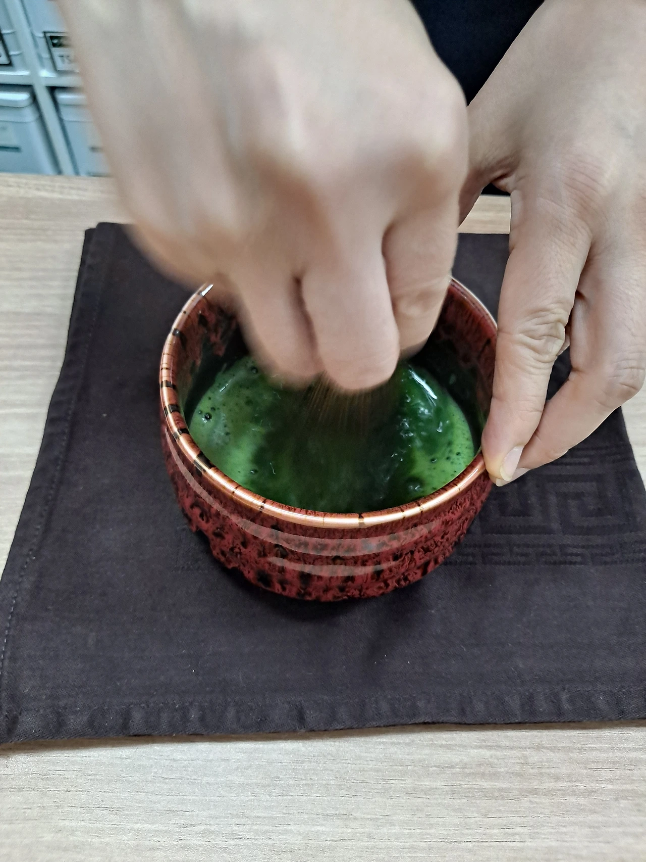 가루 형태의 말차를 뜨거운 물을 부운 후, 차선이라는 도구를 사용해 휘 저어 섞는 과정을 격불이라고 한다.