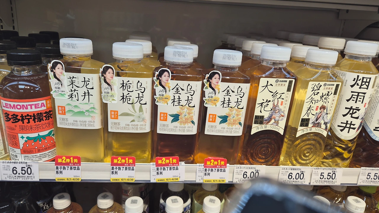 반대로 중국 편의점에는 차음료가 차지하는 비율이 정말 많다는 것이다.