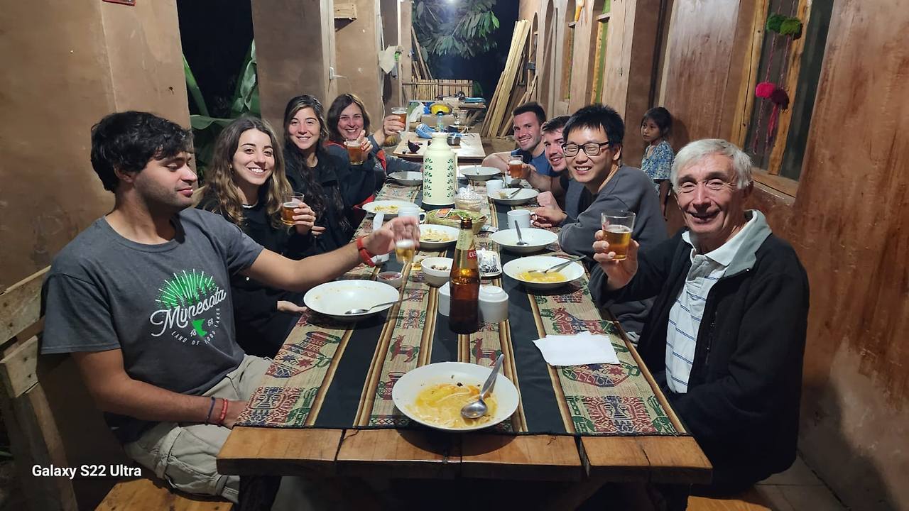 첫날부터 액티비티가 너무 재미있어서 투어가 가성비를 충분히 충족한다고 느껴졌다. 래프팅 후에 다른 그룹에서 독일인 2명이 합류했다. 나 말고도 스페인어를 못 하는 친구들이 늘었고 가뜩이나 독일인들이라 얘기하면서 덜 심심할 것 같아 좋았다. 첫날 숙소로 향하려 해가 졌음에도 1시간가량 야간산행을 해 현지인이 운영하는 산장에 도착했다. 완전히 산속에 고립된 곳이라 와이파이도 없고 온수도 안 나오고 모기도 많았다. 저녁을 먹을 때에도 스페인어로 계속 스페인어로 얘기하는 탓에 나와 독일인 2명은 심심하게 듣기평가하는 느낌으로 앉아있었다. 그래도 가이드가 얘기해 준 몇 가지 이야기들은 기억에 남는다. 이를테면 페루의 빈부격차 문제라던지, 정글에 사는 사람들이 교육이나 의료시스템의 수혜를 받기 힘들다는 얘기였다. 관광객들에게는 얼마 되지 않는 돈이지만 현지인들에게는 굉장히 큰돈이 될 수 있기에 가이드도 일부러 산 아래 마을에 있는 호스텔보다 이런 현지인들이 운영하는 숙소로 투어그룹을 데려오는 듯했다.