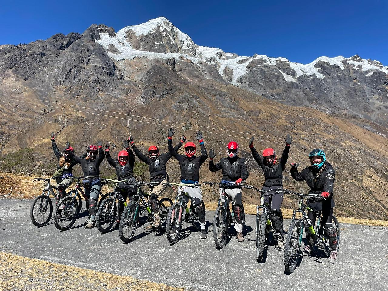 쿠스코에서 3시간여를 달려 설산이 보이는 해발 4000m 지점으로 올라와 첫 번째 액티비티인 산악자전거를 탈 준비를 시작했다. 약 2시간여 동안 50km 정도의 내리막을 달려 해발 1900m까지 내려가는 코스였다. 경사가 꽤 있는 산길이고 차가 다니는 길이여서 그런지 조금은 우습게 보일 정도로 굉장히 많은 보호장비들을 착용했다. 출발지가 워낙 고산인지라 패딩까지 입었는데도 내리막을 달리기 시작하니 상당히 추웠다. 학생 때는 자전거를 많이 탔지만 최근 3년여간 한 번도 타지 않았고 얼마 전 바뇨스에서 처음으로 다시 타서 경사가 가파르고 커브길이 많은 산길에 긴장을 많이 했다. 사실 자전거는 몸으로 타야 하는데 팔로만 조종하려다 보니 처음에는 속도를 많이 줄였다. 나중에는 그래도 긴장이 풀렸지만 끝까지 왼쪽 커브를 돌 때는 생각보다 몸이 잘 안 움직였다. 엄청 빠르지는 않았지만 나름 속도감을 즐기면서 내려왔다. 계속 브레이크를 잡고 손목에 힘을 주고 타니 막판에는 손목이 많이 뻐근했다. 2시간여를 달려 낮은 고도의 정글지역까지 내려왔을 때는 온도가 달라졌음이 확연히 느껴져서 바로 보호장구와 겉옷을 벗어던져야 했다.