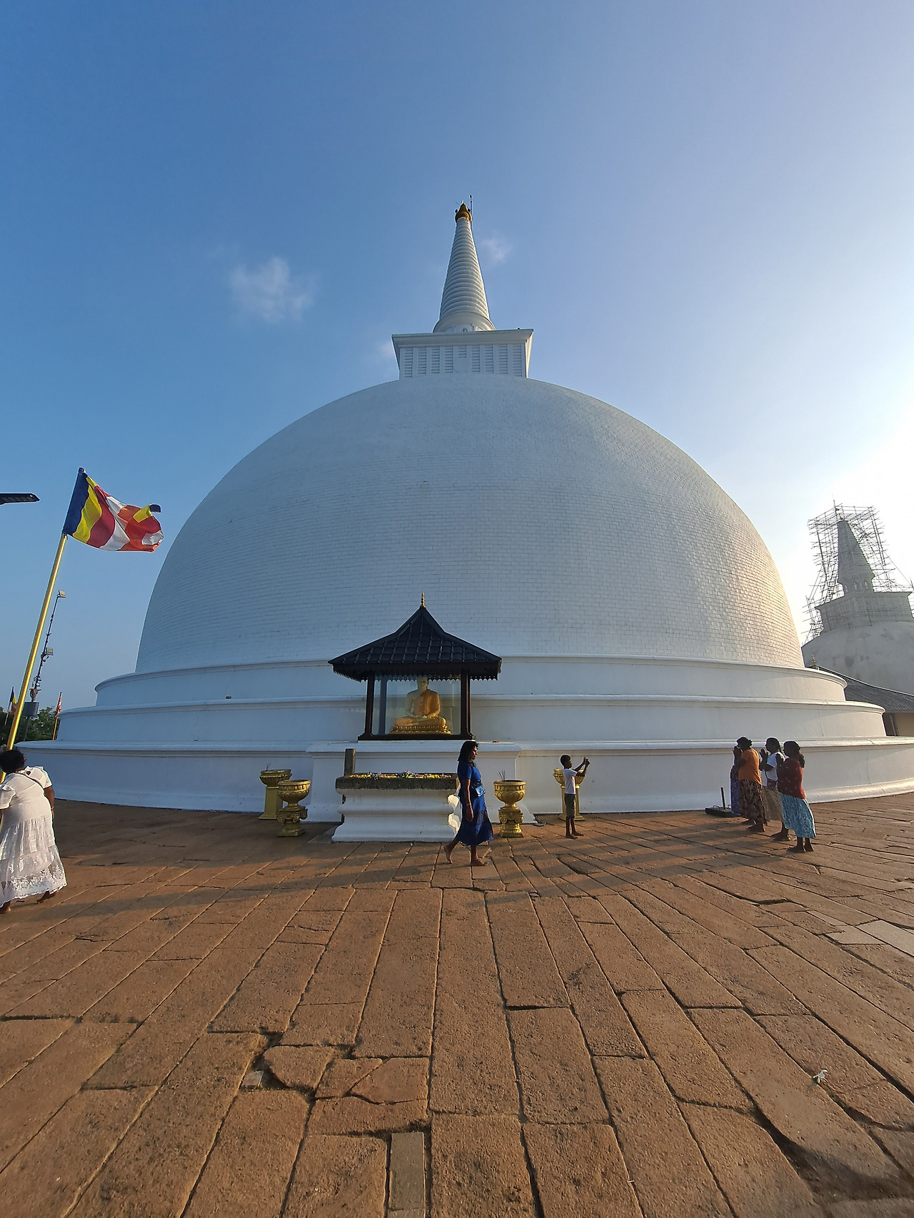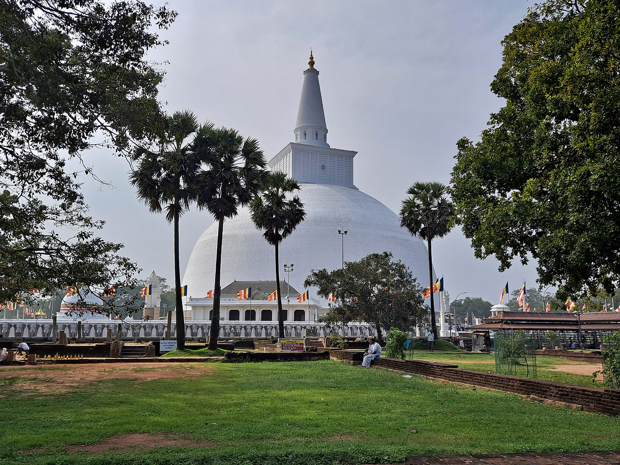 아누라다푸라에서의 둘째 날은 점심 먹을 때까지 휴식을 취한 후 오래된 사원들이 밀집한 신성도시로 향했다. 보통은 툭툭을 대절하고 30달러 하는 통합입장권을 끊어 예닐곱 군데의 유적지를 설명을 들으며 돌지만 스리랑카의 역사와 종교에도 크게 관심이 없으니 걸어서 입장료가 없는 곳들만 들어갈 생각이었다. 숙소에서 유적지까지는 생각보다 거리가 좀 됐고 그것보다도 날씨가 너무 더워서 스리마하보디에 도착하니 이미 땀범벅에 녹초가 되었다. 스리마하보디는 성스럽게 여겨지는 보리수가 있다는 정도만 알고 갔는데 보리수를 둘러싸고 사원이 있었다. 보리수에 꽃을 바치는 현지인들이 상당히 많았고 다들 하얀 옷을 맞춰 입고 보리수를 크게 돌며 기도하는 신도들의 모습도 보였다. 여기서 조금 더 걸어 도착한 루완옐리세야 대탑은 거대한 스투파였고 두 군데 모두 개인적으로 큰 느낌은 없었다. 별개로 이곳에서도 지금까지 봤던 것과는 다른 종류의 원숭이들, 앵무새와 종은 모르지만 노랗고 커다란 부리가 인상적이었던 새, 풀밭에서 유유자적하는 소들 등 많은 동물들을 볼 수 있었다. 그렇지만 더위에서부터 비롯되는 힘듦을 이기기에는 유적지가 너무 재미없었고 더 이상은 의미가 없다고 판단해 잠깐 숙소 근처 호수에 들렀다 아누라다푸라 여행을 마무리했다.