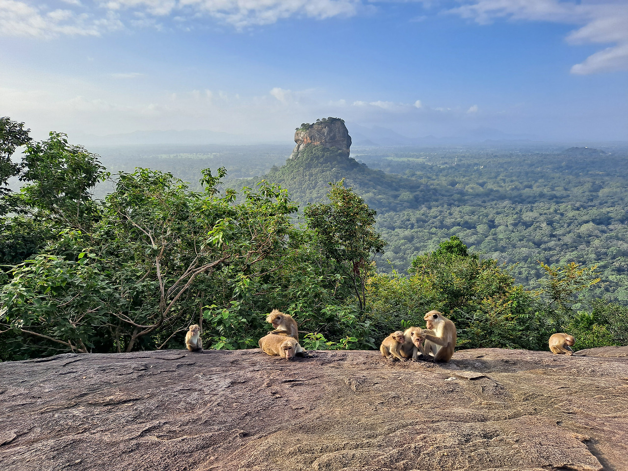 다음날 새벽에 피두랑갈라를 올라가기 위해서는 툭툭을 대절해야 했다. 도보로 1시간 30분 정도 걸리는 위치였는데 원래 같았으면 일찍 일어나서 걸어갔겠지만 이 지역이 야생 코끼리 출몰지역이라 해가 졌을 때 도보 이동은 많이 위험하다고 했다. 그런데 저녁에 숙소 주인에게 들은 가격이 내 생각보다는 많이 비쌌다. 마을에 들어오면서라도 길 위의 툭툭 기사들과 흥정을 하며 대강 가격이라도 알아놨어야 하는데 그러지 않았고 다른 방법이 없어서 편도로만 툭툭을 빌렸다. 4시 40분에 일어나서 툭툭을 타고 피두랑갈라로 이동했다. 해가 뜨지 않아 꽤나 어두웠던 산길을 올라 정상에 도착해서 일출을 기다리니 막판에는 상당히 많은 관광객들이 모였다. 아쉽게도 지평선에 구름이 껴서 일출은 볼 수 없었다. 사실 일출보다 정말 좋았던 건 1시간 정도 후에 대부분의 사람들이 툭툭 기사들과 약속한 시간에 맞춰 내려가고 조용하게 밀림과 시기리야 락을 한참 동안 바라볼 때였다. 시기리야 락이 잘 보이는 곳에 자리를 잡으니 앞에서는 원숭이들이 서로 털을 골라주며 오전 시간을 보내고 있었다. 조금 시간이 지나 볼일들을 다 봤는데 무리가 대장을 따라 나무를 타고 사라지고 옆에 앉아있던 사람들이 남아있던 한 마리의 원숭이에게 바나나를 줬다. 원숭이는 바나나 속살은 물론이고 껍질까지도 먹는다는 걸 처음 알게 되었다. 물론 얘도 꼭지 부분은 먹지 않고 버렸다. 피두랑갈라에서 두 시간이 조금 넘게 경치를 보다 내려와 숙소까지 걸어가는데 좋은 날씨에 시기리야 락과 외부 요새 옆을 지나치는 아침의 숲길이 참 좋았다. 스리랑카에서 심심치 않게 볼 수 있는 야생 공작새도 한 마리 보였다. 가까이 다가가고 싶었으나 꽤나 경계심이 있었다.