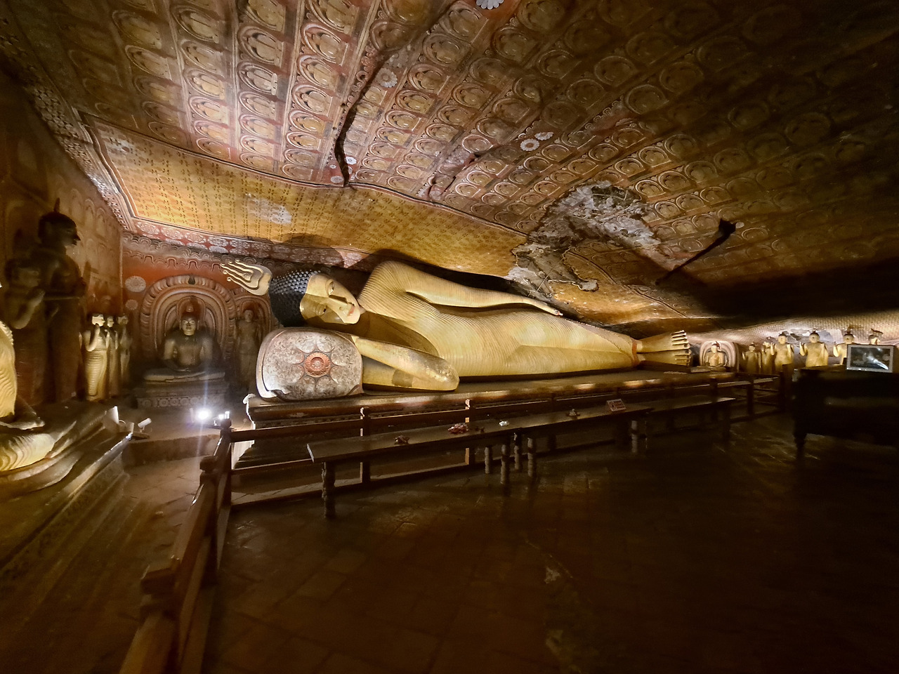 다음날 아침 남쪽으로 가는 일행들과 헤어진 후 나는 버스를 타고 다음 도시인 담불라로 이동했다. 체크인을 하고 낮잠을 자며 체력을 회복한 뒤 담불라 시내 쪽에서 유일한 볼거리인 황금사원과 동굴사원으로 50분 정도를 걸어갔다. 솔직히 황금사원은 금색으로 칠해진 스투파와 대형 불상이 전부이고 딱히 인상적인 볼거리는 없다. 황금사원 쪽을 통해서 동굴사원으로 올라가게 되면 입장권을 사기 위해 반대편 길로 꽤나 많이 걸어 내려가야 한다. 그런데 내리막길로 내려가는 길목에서 한 현지인이 말을 걸었다. 아마도 가이드로 보였는데 본인 그룹에서 한 명이 사원에 들어가지 않아서 표가 하나 남으니 원래 입장료인 2000루피 대신에 1500루피에 표를 사지 않겠냐고 물었다. 살짝은 미심쩍었지만 표에 문제가 없어 보였고 매표소까지 길을 왔다 갔다 하기도 귀찮아서 이 사람에게 티켓을 구매했고 아무 문제 없이 사용할 수 있었다. 생각보다 꽤나 계단을 걸어가야 나오는 동굴사원에서는 절벽 밑으로 지어진 건물 안에 위치한 몇 개의 석굴을 돌아다니며 수많은 불상들과 벽화를 관람할 수 있다. 벽화는 오히려 이집트 무덤의 벽화들보다도 흥미로웠고 불상들도 딱히 역사나 스토리를 알아보지 않고도 직관적으로 재미있게 둘러볼 수 있다. 스리랑카 치고 저렴한 입장료는 아니지만 오랜만에 돈이 아깝지 않은 곳이었다. 불교 사원들은 신발을 맡기고 입장해야 하는 곳이 많은데 모두 그런 건 아니지만 신발을 다시 찾을 때 꽤나 노골적으로 기부금을 요구하는 경우가 많다. 이곳에서도 신발을 돌려받을 때 귀찮다는 표정으로 손가락을 비비는 제스처를 취하며 기부금을 요구해서 무시하고 신발만 찾아갔다. 이미 외국인들만 내는 고가의 입장료를 지불했고 아무리 유지비가 든다고 해도 이렇게 예의 없고 노골적으로 돈을 요구하는 것은 불교의 정신과도 맞지 않는다. 이 날부터 날씨가 괜찮아지기 시작했는데 사원을 나서서 전망을 볼 수 있는 곳을 찾아 오랜만에 비가 오지 않는 오후를 만끽했다.
