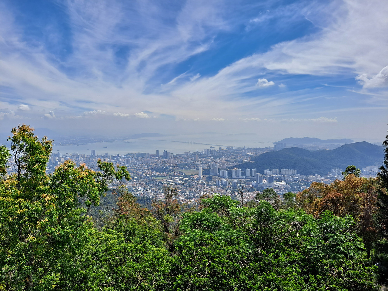 의외로 말레이시아가 정말 마음에 든 것과는 별개로 이곳은 여행할만한 도시가 그렇게 많은 나라는 아니다. 그래서 마침 볼 것도 꽤나 많고 음식도 맛있다고 하니 말레이시아를 떠나기 전까지 비는 일주일을 온전히 페낭에서만 보내기로 했다. 페낭여행의 중심 조지타운은 페낭 섬 내에 있어서 들어가려면 다리로 해협을 건너는데 그 길이가 8.5km나 된다고 한다. 맑은 날씨 덕분에 인천대교를 건널 때 느껴지는 시원함과 비슷한 느낌을 받을 수 있었다. 산악지방이라 긴소매를 입을 정도로 시원한 날씨였던 카메론 하이랜드와는 달리 뜨거운 햇살이 내리쬐는 섬에 들어왔으니 버스에서 내리자마자 강렬한 더위가 온몸을 때렸다. 버스터미널이 조지타운과는 약간 거리가 있어 근처에서 간단히 식사를 해결하고 시내버스를 타고 이동했다. 지금까지 다른 여행지들에서 에어컨은 고사하고 앉을자리조차 없는 경우가 대부분이었고 승하차 위치나 출발시간도 현지인에게 물어보지 않으면 도무지 알 수 없었던 버스와는 달리 구글지도가 알려주는 스케줄대로 운행하는 쾌적한 버스가 너무나 반갑게 느껴진다. 버스에서 보는 페낭의 첫인상은 왠지 모르게 바다에 접한 부산과 애매한 높이의 낡은 아파트와 상가들이 서 있는 여의도 주거지역을 섞어놓은 느낌이었다.