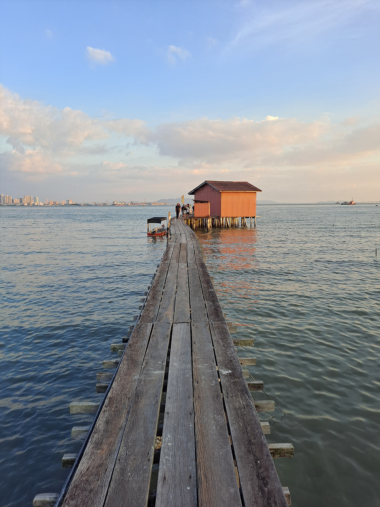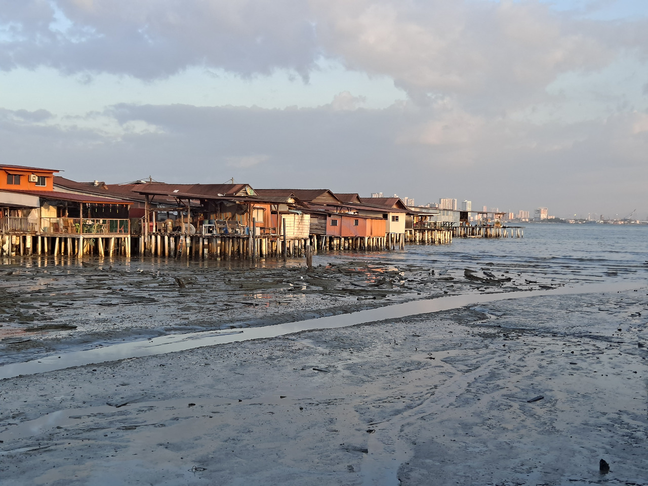 섬에 들어온 이상 첫날은 아무리 피곤해도 바다를 구경하게 된다. 조지타운의 동쪽 바닷가에는 수상가옥들이 자리하고 있다. 중앙 길을 따라 기념품점이나 식당들도 있지만 대부분은 실제로 사람이 사는 곳이었다. 꽤나 여러 곳의 수상가옥 밀집지들이 있는데 해가 질 즈음 간단하게 산책하고 일몰을 구경하기 좋다. 다만 나무로 만들어진 부두가 당장 무너져도 이상하지 않을 정도로 상당히 허술해서 반대편에서 사람이 오게 되면 상당히 무서웠다. 언 듯 보이는 수상가옥 안은 때로 가정집인지 사당인지 구분하기 어려울 정도로 중국식 도교나 불교 장식들로 꾸며져 있는 곳들이 많았다. 상수도나 전기선은 데크 위로 보였는데 하수도는 어떻게 처리하는지도 궁금해졌다. 조지타운에서 유명한 벽화와 중국식 조명이 켜진 거리를 거쳐 숙소로 돌아왔다. 조지타운의 첫인상은 시골은 아니면서 복잡하지 않고 은은한 따뜻함을 풍겼다.