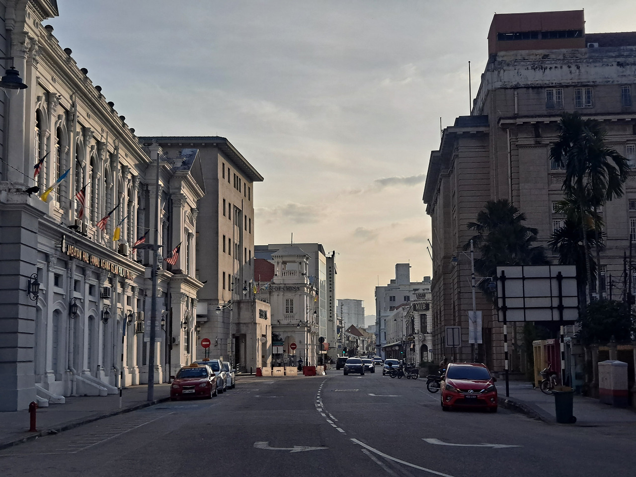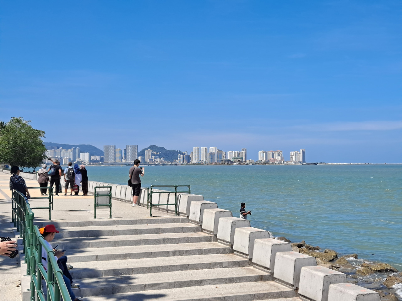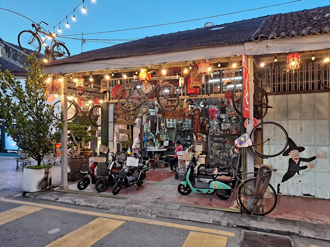 점심을 먹고 페낭 시내를 그냥 정처 없이 돌아다녔다. 유명하다는 벽화들은 상태가 안 좋은 것들이 많아 보여서 지나다니다 우연히 볼 때를 제외하면 따로 찾아다니지는 않았다. 아무렇게나 걸어 다녀도 옛 중국분위기가 많이 나는 건물들이 가득한 거리가 참 예쁘다. 조지타운 북쪽 바닷가에는 낚시를 하고 있는 현지인들이 많았고 근처 선착장에 거대한 크루즈도 입항해 있었다. 다만 바닷가와 물은 좀 더러웠다. 낮 시간대가 되니 도저히 견딜 수 없는 더위에 숙소로 잠시 피신해 있다 저녁을 먹고 또 한참을 돌아다녔다. 걷다 보니 어제와 같은 곳을 지나치고 같은 곳에서 일몰을 봤지만 여전히 도시가 주는 느낌이 마음에 들었다.
