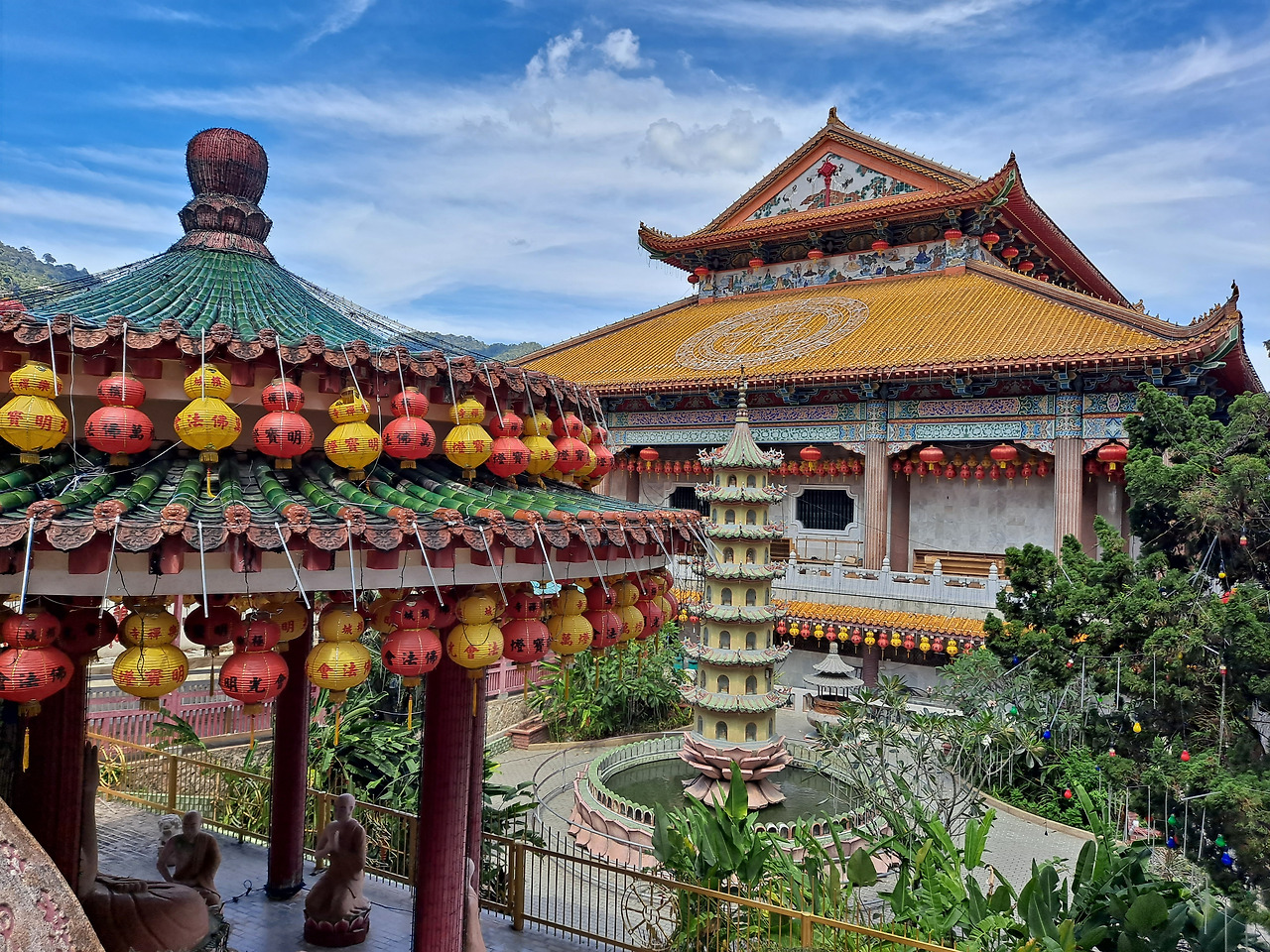 기왕 버스 타고 여기까지 온 김에 근처에 있는 극락사까지 들려보기로 했다. 사실 스리랑카에서 불교사원은 지겹도록 가봤기 때문에 큰 기대는 하지 않았는데 이곳은 동남아식이 아닌 중국식 사찰이라고 한다. 스리랑카의 사원들이 대형 스투파와 불상을 제외하면 솔직히 별 게 없는 반면에 중국식 사찰은 역시 여러 건물과 구조물들이 어우러지며 익숙한 듯 이국적인 느낌을 만들어냈다. 이름값을 하는지 너무 아름다운 모습에 여기서만 두 시간가량을 보낸 것 같다. 건물들과 장식이 워낙 화려하다 보니 동양 문화에 익숙한 내가 봐도 이 정도인데 아시아에 대한 막연한 환상이 있는 서양인들이 보면 환장할 것 같다. 약간의 입장료를 내고 탑에 올라가서 보는 도시와 산의 모습도 꽤나 괜찮았다. 사실 중국여행이 비자나 숙소 같은 면에서 제약이 많고 중국어를 하지 못하는 상태에서 가면 난이도가 꽤 있는 탓에 조금도 생각해 본 적이 없지만 말레이시아에서 중국 문화권을 경험해 보고 살짝 궁금함이 생겼다. 땅덩어리가 큰 만큼 정말 어마어마한 볼거리도 많다는데 언젠가 가게 될지도 모르겠다. 만족스러운 구경을 마치고 조지타운으로 돌아와 저녁을 먹고 하루를 마무리했다. 옮긴 숙소에 2층침대를 받았는데 정말 기본적인 2층침대라 사다리를 디딜 때마다 발이 너무 아팠다. 여행자들이 2층을 피할 수만 있으면 피하는 이유가 있다.