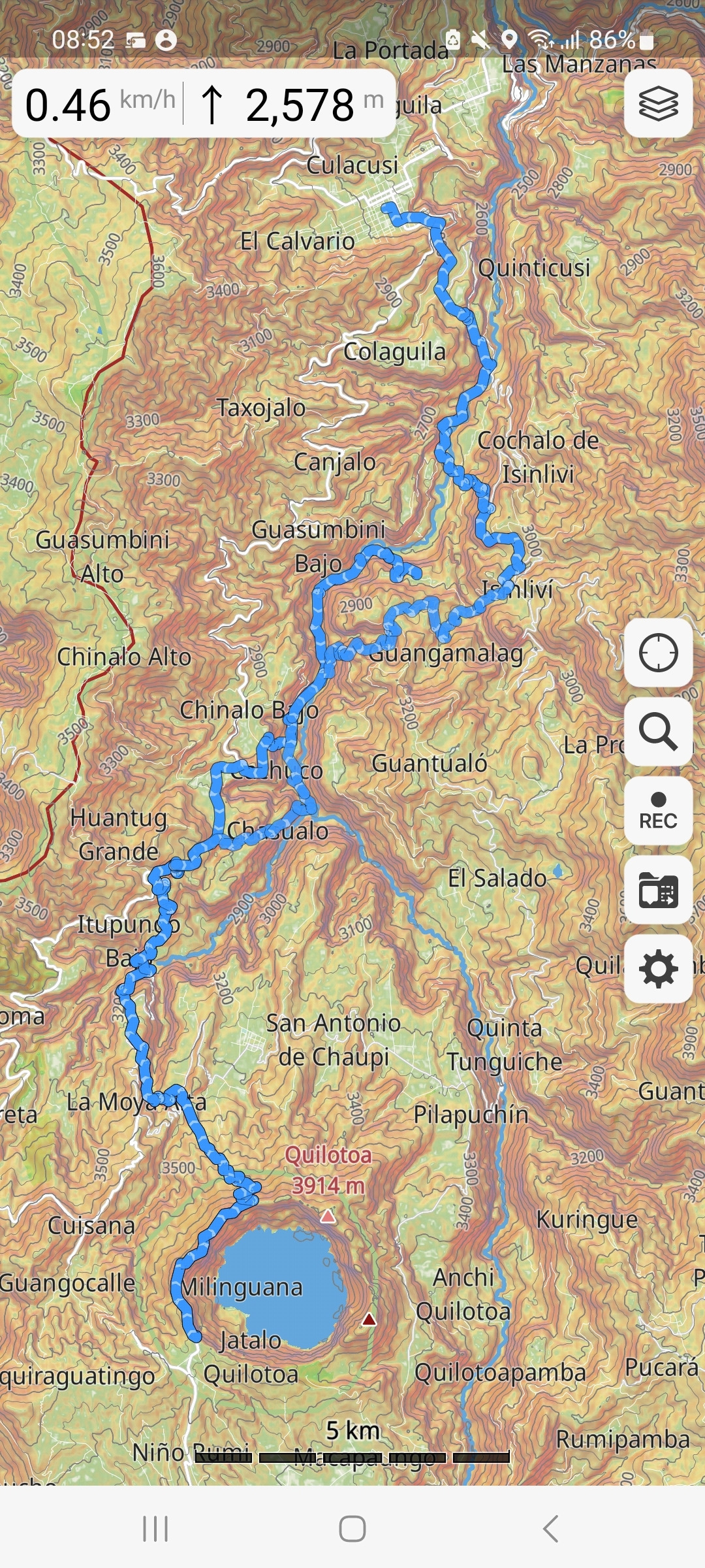 세계여행의 시작이 에콰도르가 된 건 내가 이 나라에 딱히 로망이 있어서도 아니고 그냥 남미로 가는 가장 싼 비행기표가 여기 있었기 때문이다. 그래도 나름 처음 들어가는 나라라고 출발 전부터 조금은 애정이 생겨 키토나 바뇨스 같이 남들 다 가는 곳 말고 색다른 곳을 경험해 보고 싶었다. 외국 유튜브와 블로그를 뒤지던 중 킬로토아 호수(Laguna Quilotoa)를 발견했고, 바로 버스를 타고 올라가서 관광만 하는 것이 아니라 3일 동안 40km여를 걸어서 올라가는 트래킹 코스가 있다는 것도 알게 되었다. 외국인들 사이에서는 그래도 꽤 알려진 코스인 듯한데 한국인이 작성한 정보는 블로그 딱 한 군데에 있는 포스트가 전부였다. 남들이 안 하는 거 좋아하는 아웃사이더 기질이 또 도져서 평소에 운동도 절대 안 하고 기초체력도 쓰레기 주제에 패기 넘치게 도전했다. 라타쿵가 호스텔 주인분의 도움을 받아 코스 설명도 듣고 오프라인 지도도 다운로드하고, 큰 가방도 호스텔에 맡기고 나름 필요한 준비를 갖췄다.
