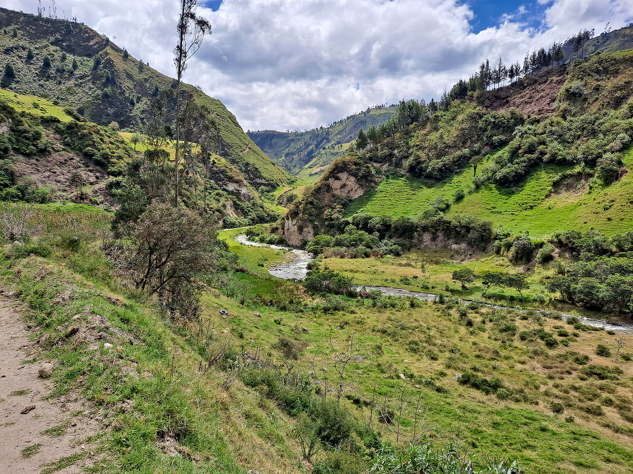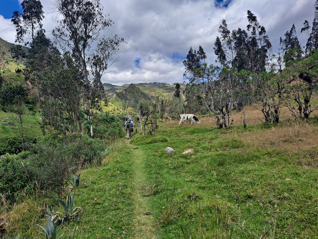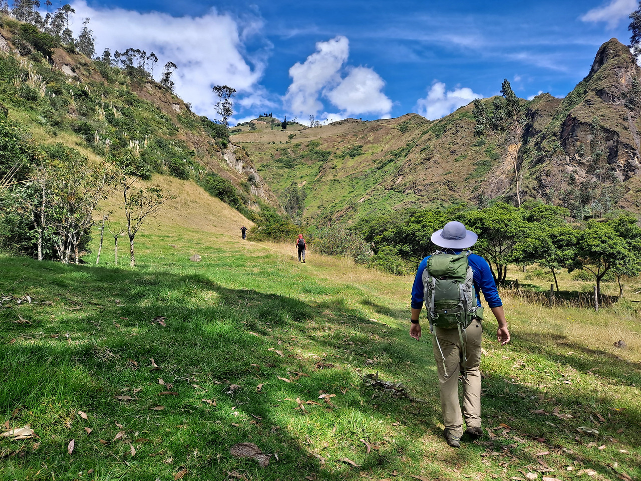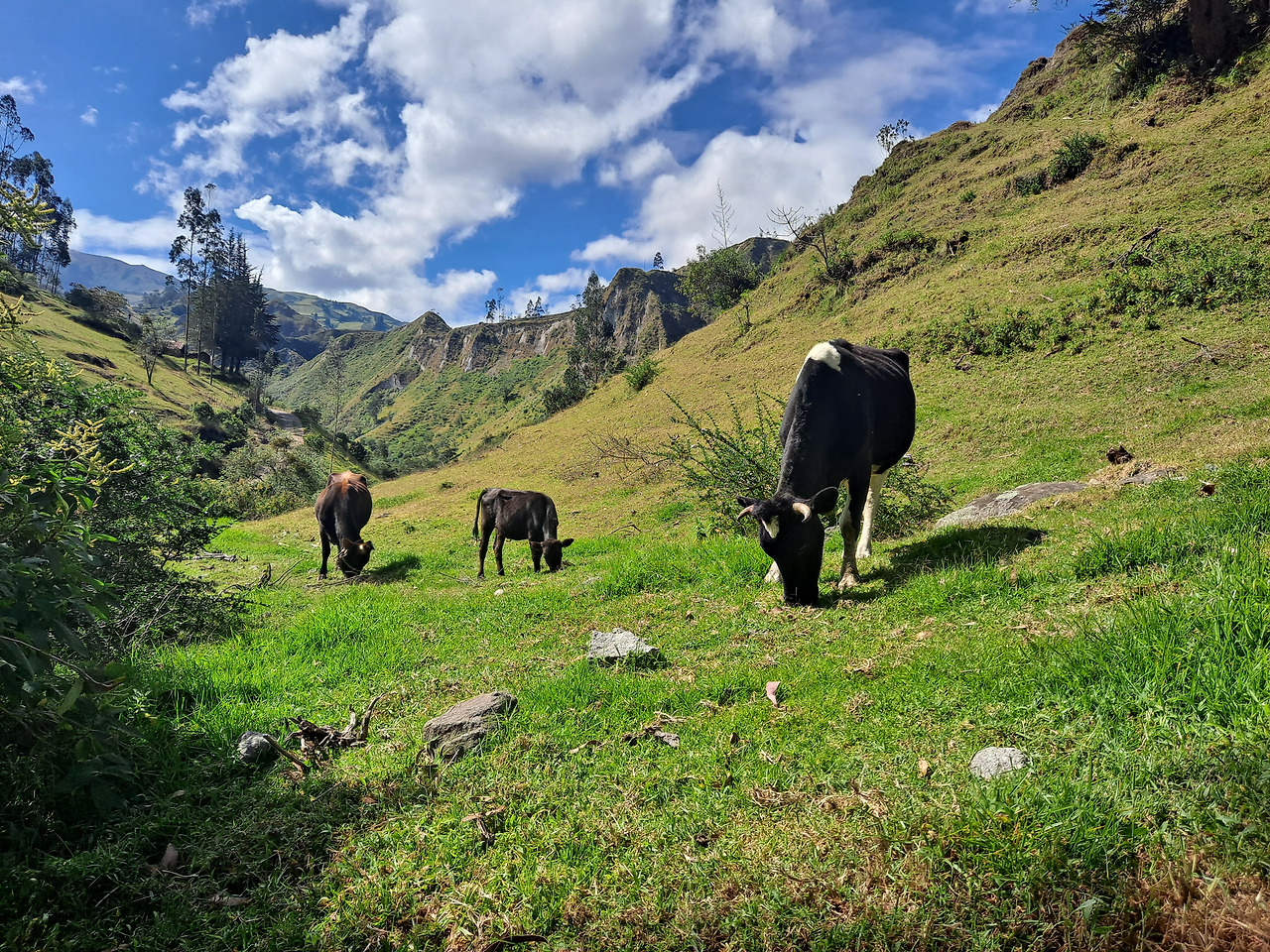 첫날 코스는 Sigchos에서 Isinliví라는 마을로 가는 코스인데 경험해 본 거의 모든 사람들이 난이도는 쉽다고 했다. 실제로 시작점에서 한동안은 계속 내리막이고 그 이후로도 절경이 펼쳐진 평지 코스가 길게 이어진다. 딱히 체력소모가 심하지 않았기에 중간에서 여유롭게 점심으로 싸 온 엠빠나다도 먹어주고 가는 길에 널린 가축들도 구경해 주면서 '이거 너무 쉬운 거 아냐'하는 생각도 해준다.