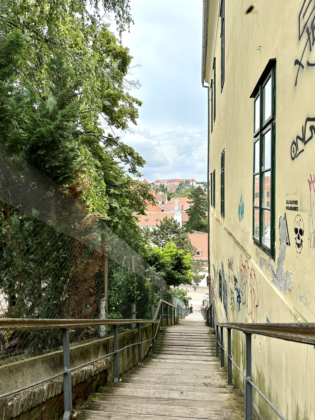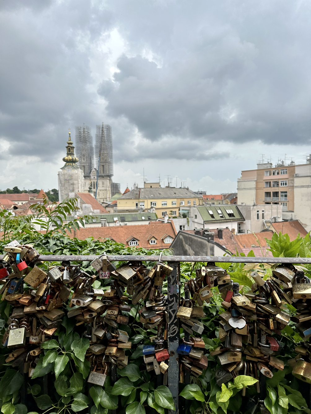 실연박물관에서 나와 옆길로 내려오면 이렇게 자그레브의 랜드마크인 성당을 내려다볼 수 있습니다. 그리고 연인들이 사랑이 영원히 풀리지 않게 해달라고 걸어둔 자물쇠들도 볼 수 있어요. 이 자물쇠를 보고 여기가 남산일까? 하는 착각을 잠시 하기도 했지만 그만큼 사랑이 전 세계 모든 사람들의 가장 큰 관심사라는것 만큼은 변하지 않는 것 같아요.