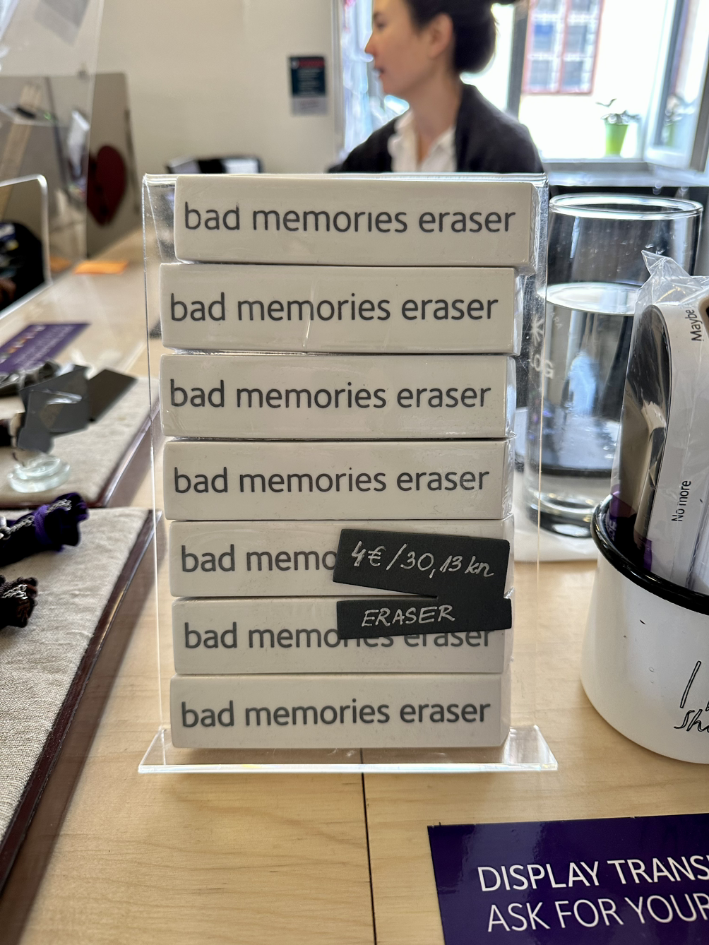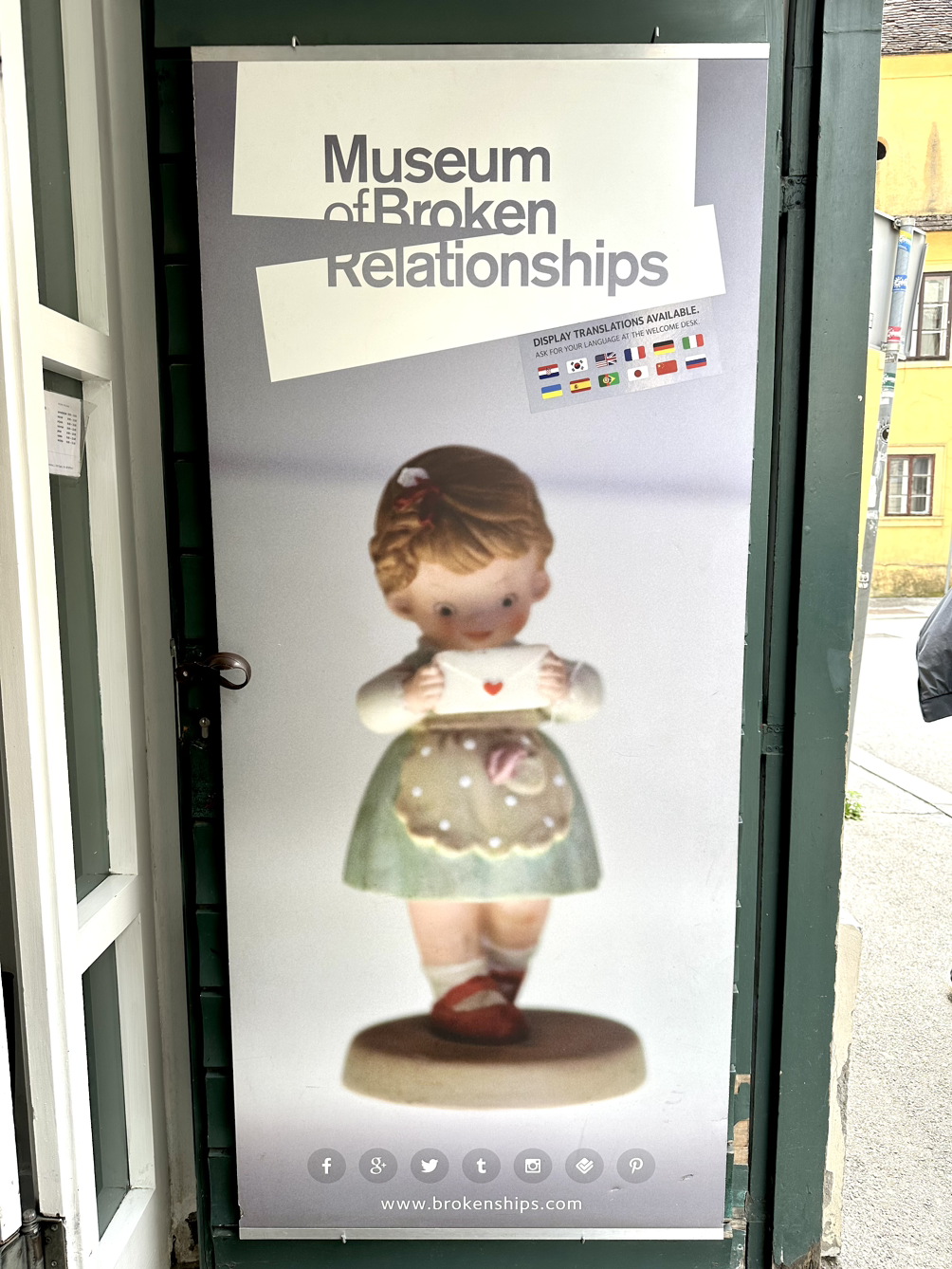 위의 사진은 제가 자그레브에서 가장 가고 싶어했던 실연박물관, 깨진 관계에 대한 박물관입니다. 저는 이 박물관이 깨진 관계나 실연에 대해서 어떤 인사이트를 주는 줄 알고 작가님들께 가자고 했던 것인데요. 막상 입장료를 주고 들어가보니 실연 당하거나 깨진 관계에 대한 물건들과 사연을 전시해 놓은 곳이었어요.