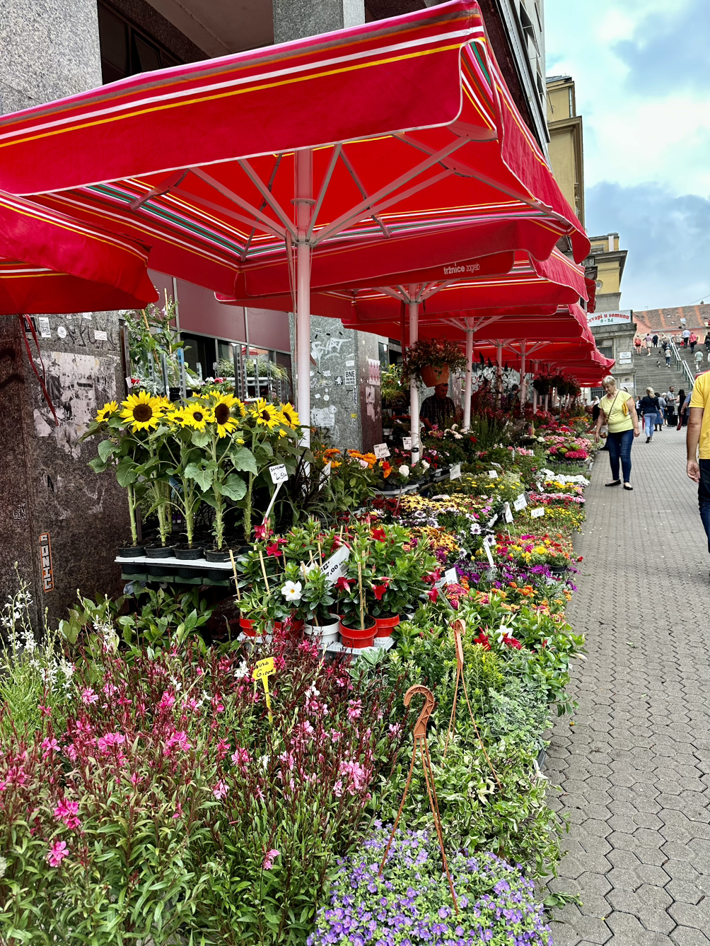 자그레브의 돌라츠시장이에요. 아침 6시부터 오후 2시까지만 열린다고 해서 얼른 구경하러 가보았습니다. 그런데 비가 온다는 일기예보가 있어서 그런지 평소보다 상인분들이 훨씬 적게 나와있었어요. 빈 자리가 많아서 아쉬웠지만 꽃과 과일, 채소들을 주로 팔길래 열심히 돌아보았습니다.
