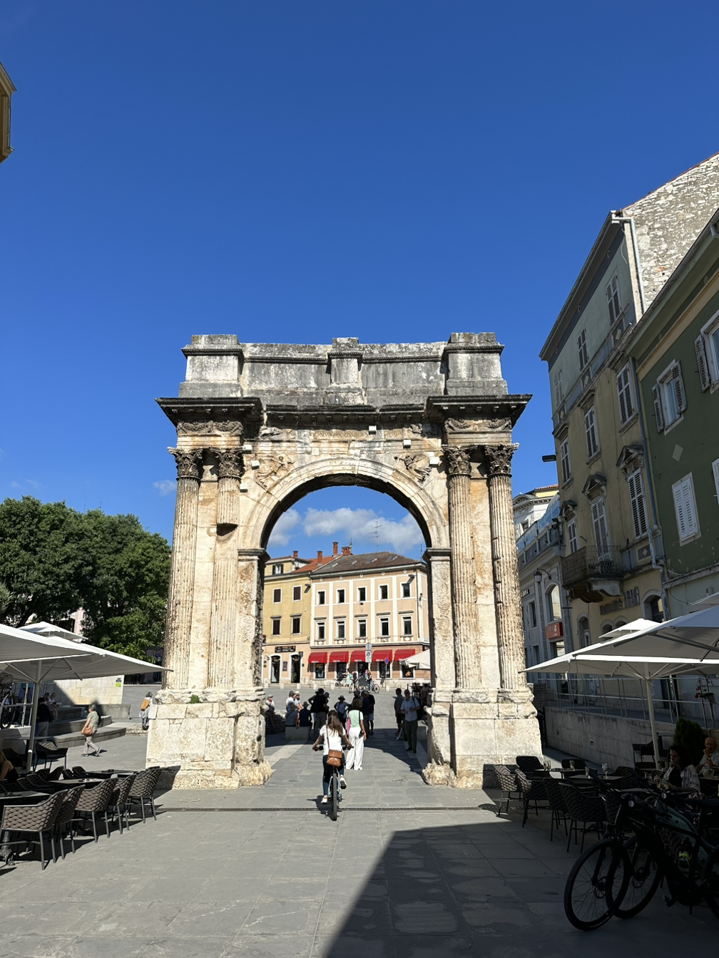 풀라의 숙소에서 나오면 보이는 문입니다. 믿기 어려우시겠지만 여기도 개선문이 있네요. 진짜 명칭이 세르기우스 개선문입니다. 악티움 해전의 승리에 기여한 세르기우스 형제들을 기리기 위해 기원전 30년경에 만들어진 개선문이라고 해요.ㅎㅎ 풀라 가장 중심에 있어서 이곳에서 움직이기 시작하면 지도 보기가 매우 편해요! 구시가지로 들어가기 위한 관문이기도 하고요. 풀라는 도시 곳곳에 유적들이 있어서 정말 한시도 눈을 뗄 수 없을 만큼 주위를 기울이고 자세히 보면서 다녔어요. (오기 전에 조금 더 공부하고 왔으면 더 좋았을 거라는 생각도 함께 했고요.ㅎㅎ 언제나 여행지에서는 아는 만큼 보이니까요!) 우리는 잠시 숙소에서 쉬다가 주변에 있는 다른 도시에 가기로 했습니다. 그래서 차를 타러 주차장에 가는 길에 찍은 것이죠.