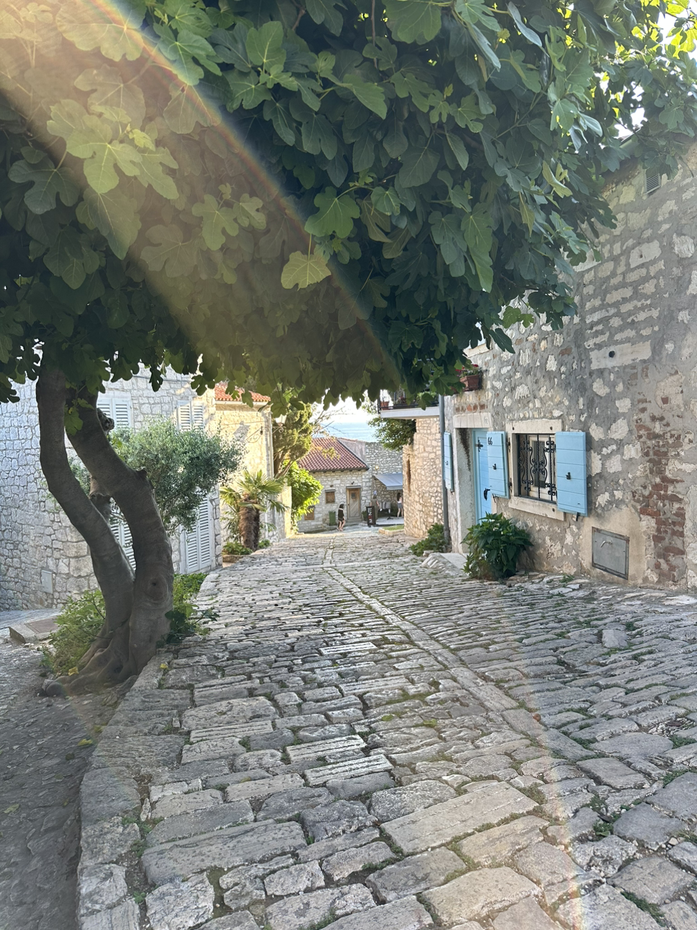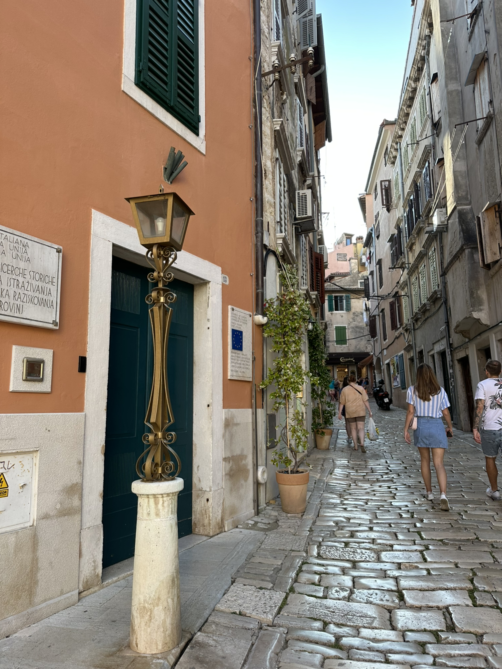 저희가 그냥 지나칠 수 없는 전통시장입니다. 아주 놀란 건 풀라나 로빈에서는 동양인을 정말 찾아보기 힘들었어요. 그래서 이곳분들이 저희를 한국사람이라고 알아맞히기 어려울 거라 생각했죠. 왜냐면 유럽에서는 한국인들을 일본인이나 중국인으로 많이 헷갈려하거든요. 그런데 이곳의 한 할아버지가 한국어로 단어를 막 이야기하는 게 아니었어요? 그리고 저에게 송로버섯 트러플잼을 맛보라고 주었고요.ㅎㅎ 한국어를 어떻게 배웠냐고 물어보니 한국드라마를 보고 배웠대요! 여기서 조인성 씨와 고현정 씨가 나오는 한국 드라마 '디어마이프렌즈'를 촬영했거든요. 그러니 그 드라마를 당연히 봤을 거라 생각됐습니다. 이렇게 전 세계로 뻗어 나가는 K컬처에 한 번 더 놀라며 구시가지 안으로 들어갔어요!