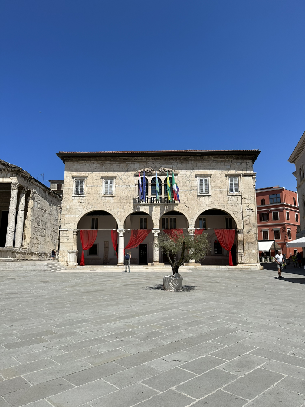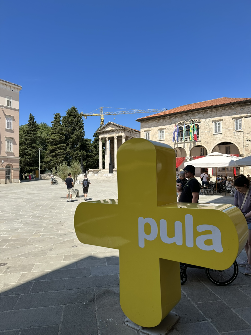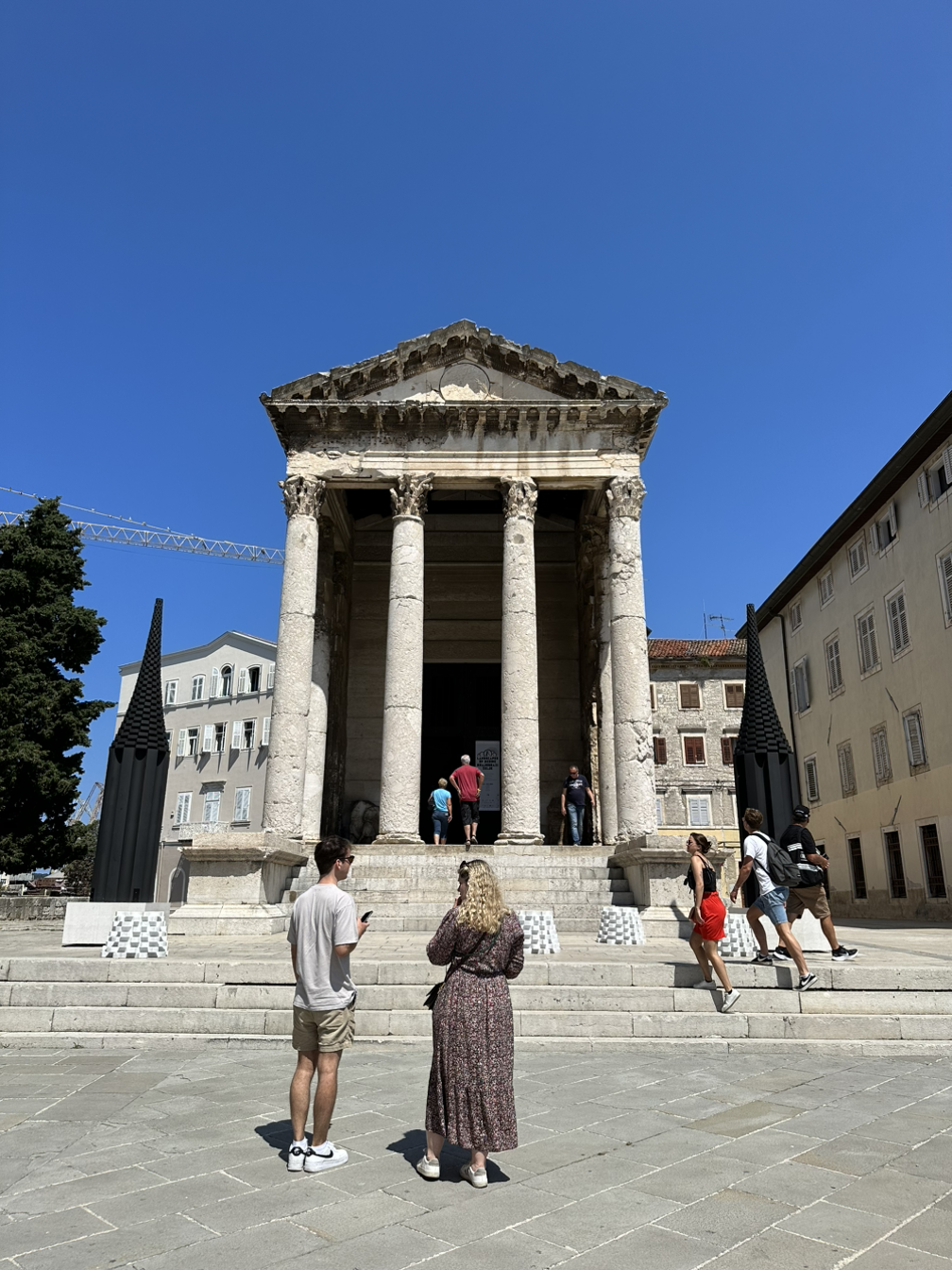 가장 먼저 풀라의 광장에 도착했어요. 아주 멋진 건물은 아우구스투스 신전입니다. 기원전 2세기의 건물이고, 로마포럼의 유적지 이기도 합니다. 풀라는 도시 전체가 유적지 또는 박물관이라고 해도 과언이 아닐 만큼 도시 곳곳에 다양한 유적들이 자리 잡고 있습니다. 그런데 저 따가운 햇살 느껴지시나요?ㅎㅎ 휴양지라 그런지 다른 도시보다 햇살도 뜨겁고 한 여름처럼 매우 더웠습니다. (아직 오전인데 오후엔 어쩌려고;; 아주 큰 일ㅠㅠ)