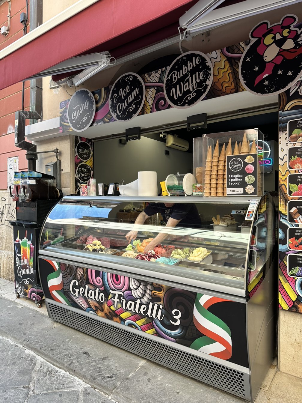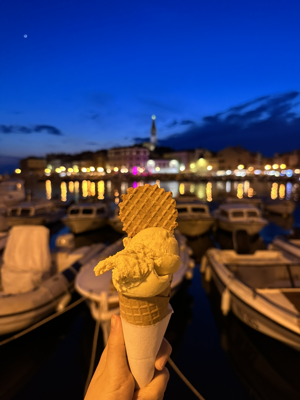 지금사진 작가님께서 마무리 야경을 찍을 때, 저는 젤라토를 사 왔습니다. 커피만 마시고 앉아있기 미안한 마음도 있고, 같은 레스토랑에서 젤라토도 팔길래 먹어보고 싶어서 구매했죠. 저는 젤라토 가게에 가면 매일 다른 맛의 젤라토를 고르는데, 지금사진작가님과 지노그림 작가님은 언제나 피스타치오를 외칩니다! ㅎㅎ 그래서 묻지 않고 사다 주어도 편한 것은 있었어요. 작가님들과 젤라토를 하나씩 먹고, 마지막으로 풀라의 밤을 느낀 뒤 저희는 다시 숙소로 돌아가기로 합니다.
