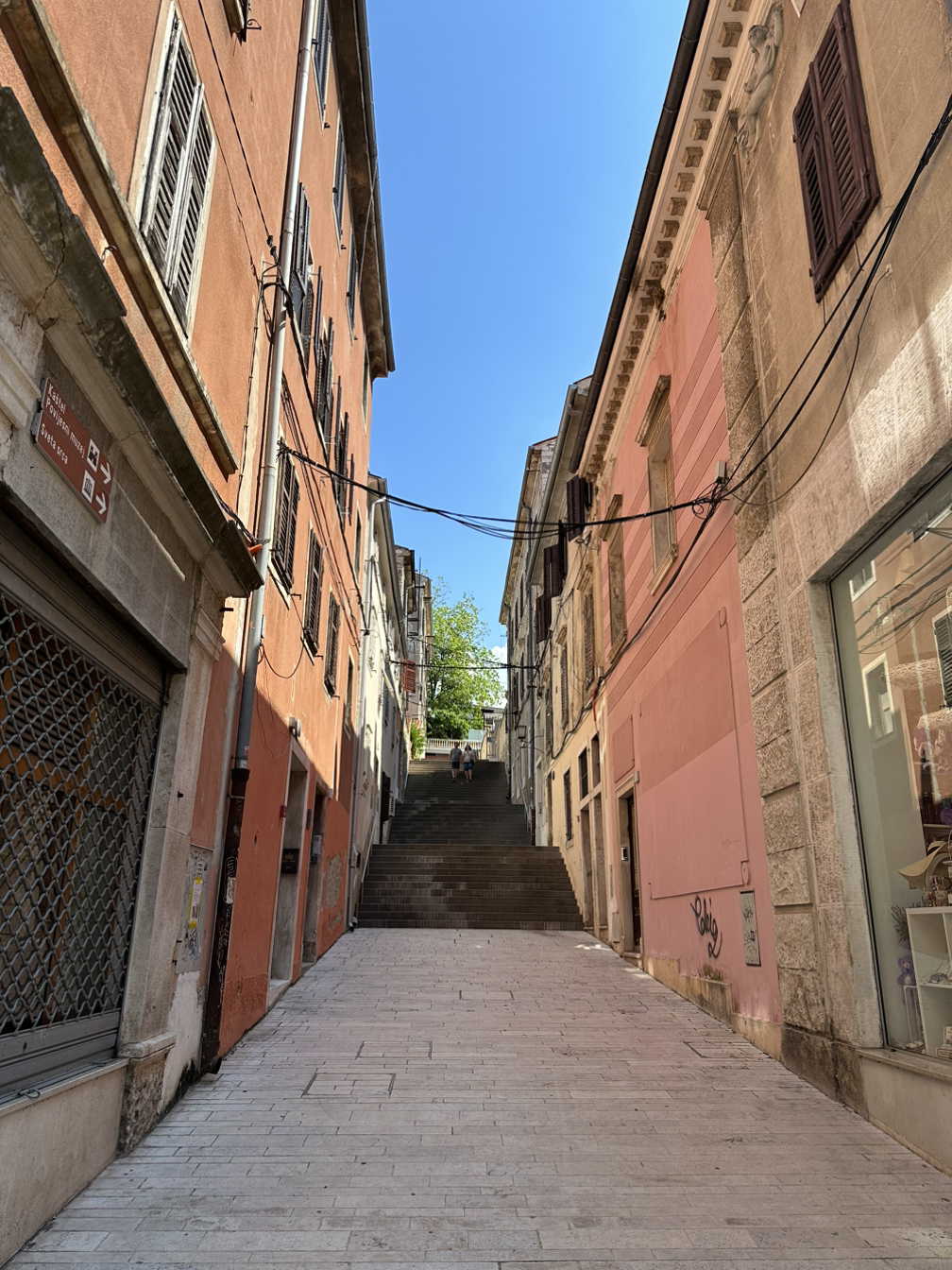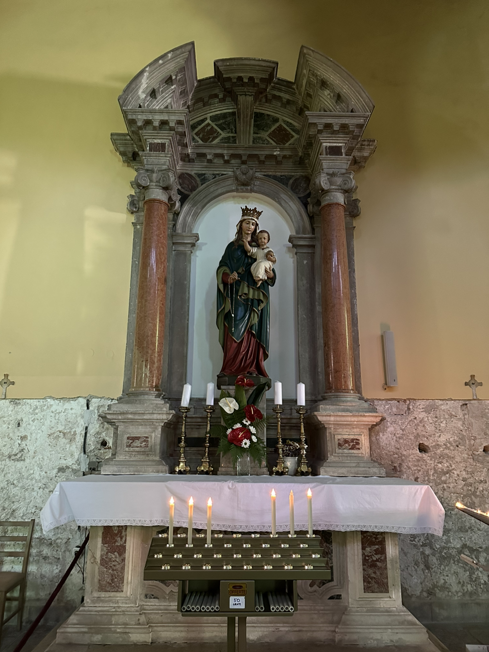 그렇게 골목골목을 거쳐 이곳에서 가장 유명한 성녀 에우페미아 성당에 도착했습니다. 1736년에 바로크 양식으로 지어진 성당이에요. 성녀로 추앙된 에우페미아를 기리는 장소이기도 합니다. 성당이 크거나 화려하진 않지만 오히려 조용히 기도할 수 있어서 좋더라고요. 도시의 가장 높은 곳에 있어서 올라오면 도시를 한눈에 조망할 수 있다는 점도 매우 마음에 들었습니다. 물론 유럽의 거의 모든 성당은 도시의 가장 높은 곳에 있어서 대부분 성당을 찾아 올라가면 도시를 한눈에 볼 수 있습니다!