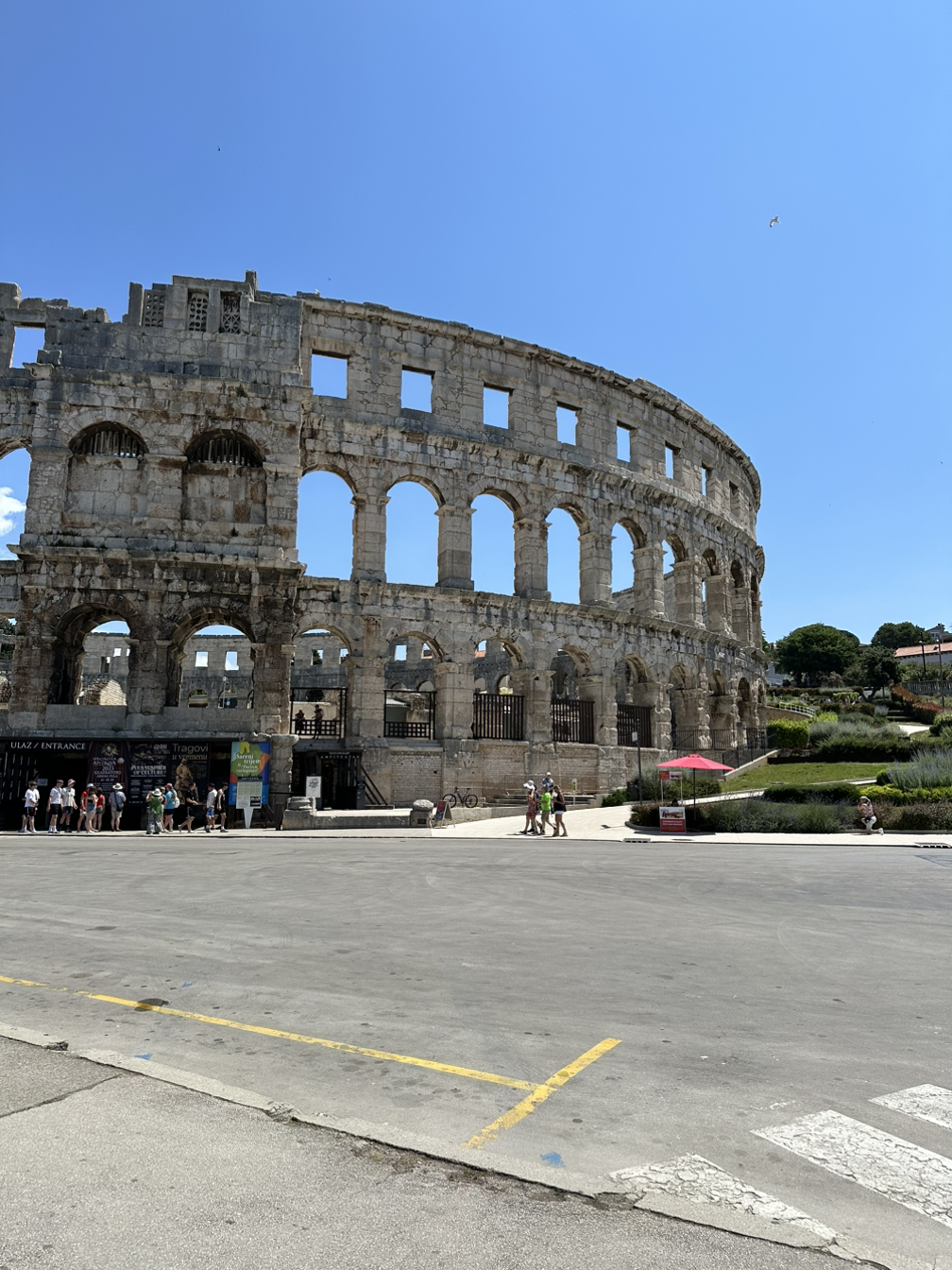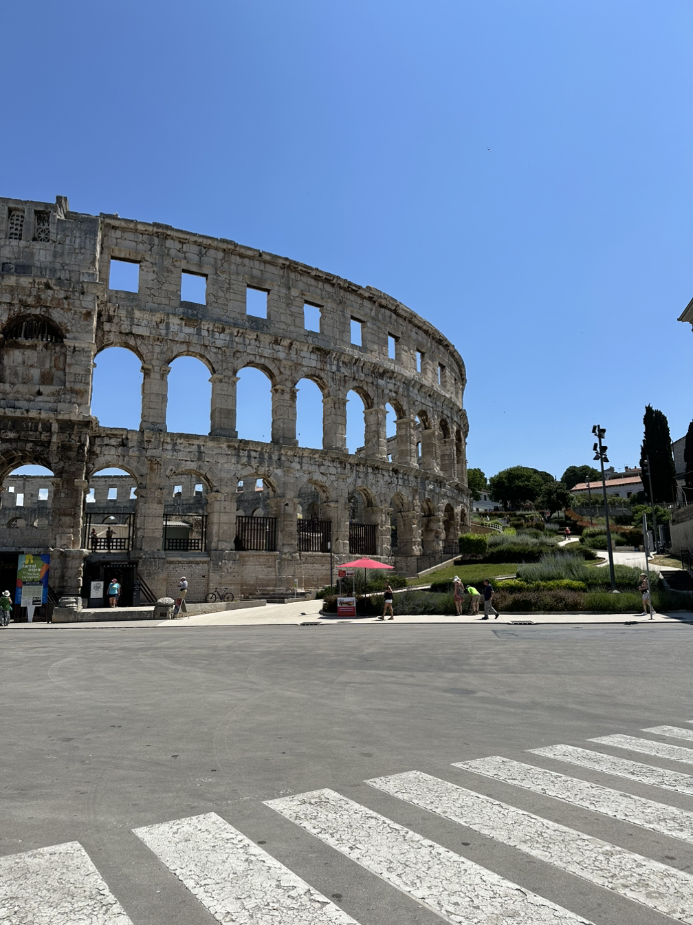 거대한 이곳은 풀라 아레나입니다. 역시 로마시대에 지어진 원형 극장이에요. 풀라라는 도시에 로마의 작은 역사가 담겨있다고 해도 과언이 아닐 정도로 많은 유적이 남아있었습니다. 이렇게 오전 내내 도시 구석구석을 돌아본 우리는 슬슬 배가 고파져 점심을 먹으러 가기로 했습니다.