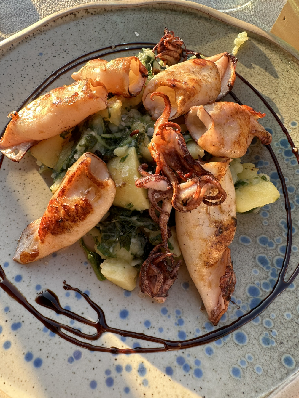 저희가 주문한 저녁입니다. 첫 번째 보이는 사진은 이 레스토랑의 매니저에게 추천을 받은 음식이고, 두 번째는 풀라에서도 맛있게 먹었던 그릴 깔라마리, 그리고 생선구이와 감자조림, 빵입니다. 맥주도 시켰는데 먹느라 정신없어서 사진을 빼놓고 말았어요. 어쨌거나 솔솔 불어오는 바람을 맞으며, 해가 서서히 넘어가는 풍경을 보면서 맛있는 저녁을 먹었습니다. 지금사진 작가님은 드디어 처음으로 삼각대를 펼쳤어요. (원래 자기 일 몰두할 때가 사람은 제일 멋있어 보이잖아요.ㅎㅎ) 수제비 끓여주던 지금사진 작가님이 사진 작가님으로 보이기 시작하는 순간!