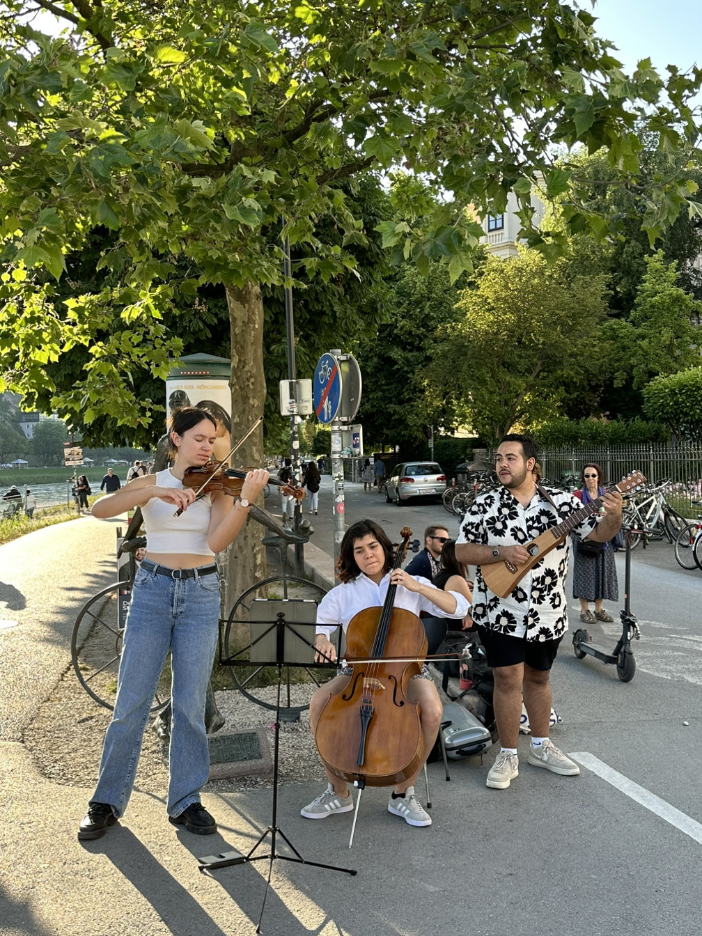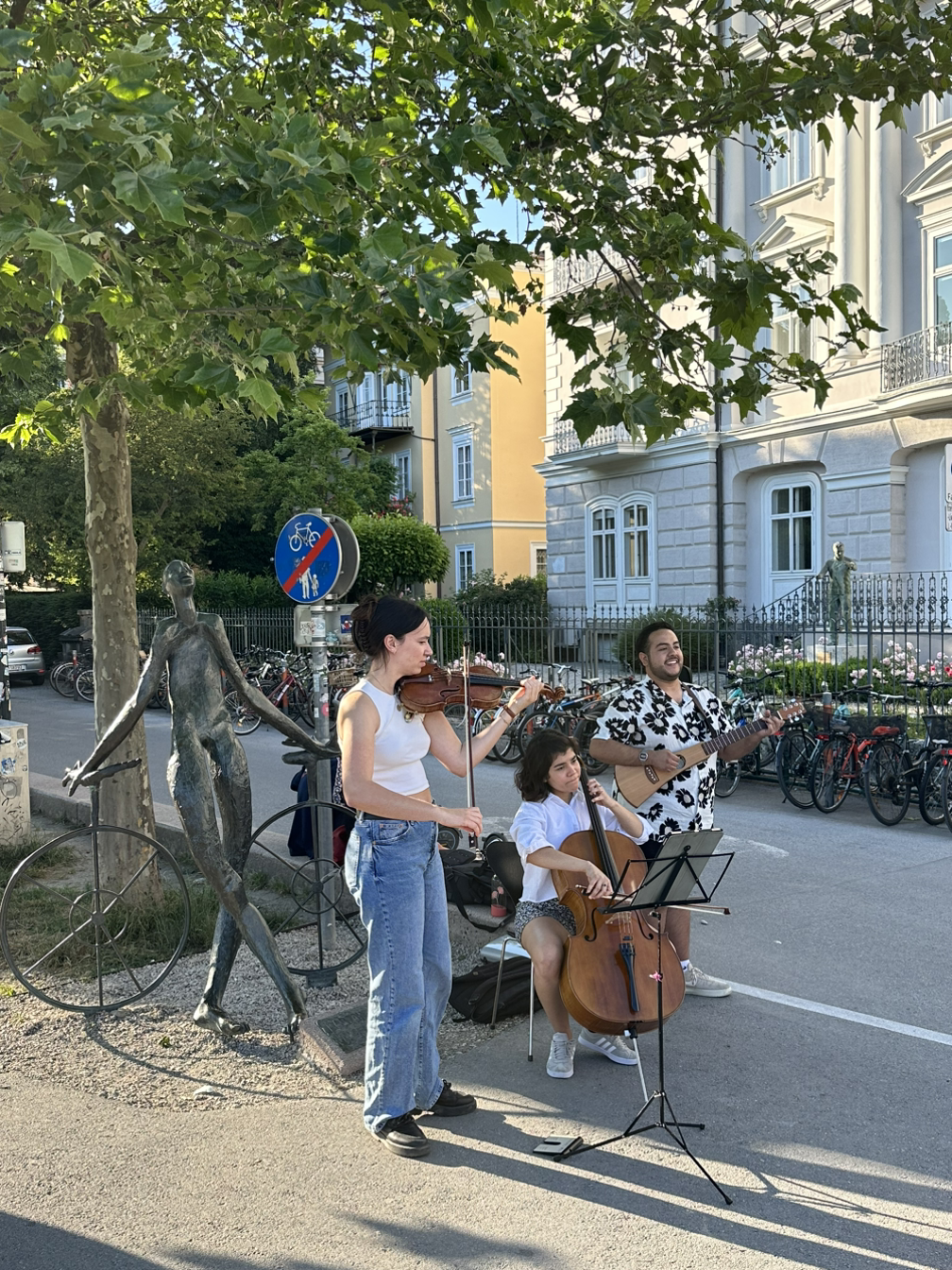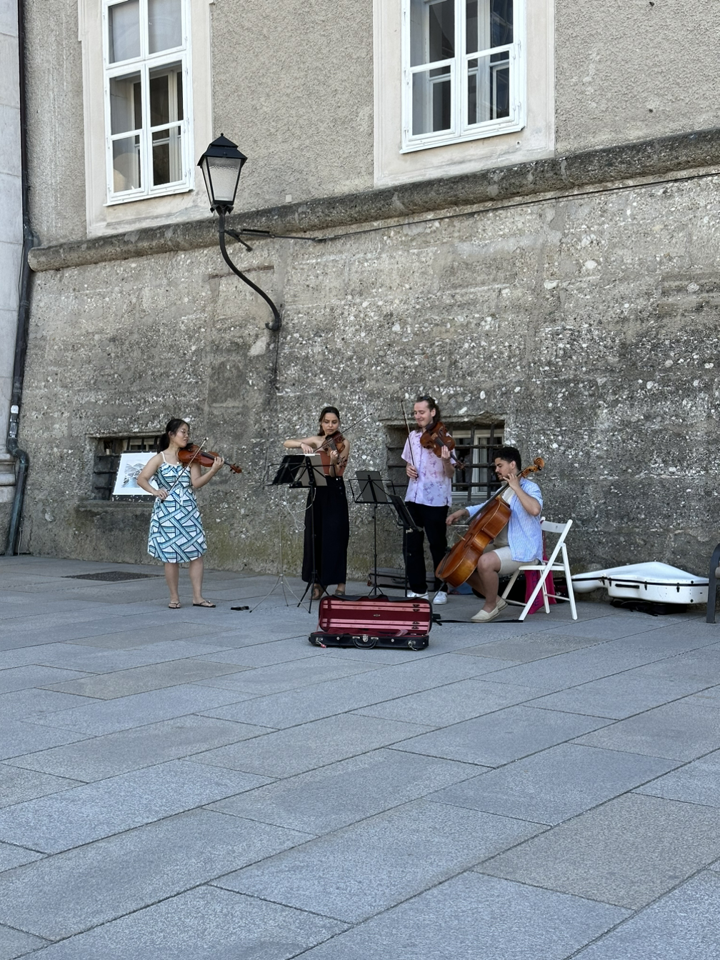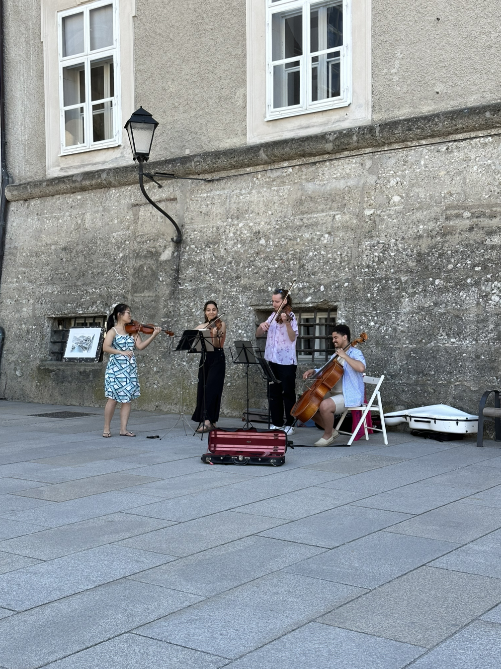 음악종 탑 앞에서 현악 4중주로 버스킹을 하는 청년들을 보았습니다. 음악이 듣기 좋아서 두 곡 정도 감상한 것 같아요. 저도 잘 다루는 악기가 있다면 버스킹을 시도해 보지 않았을까 하는 작은 상상을... 하지만 잘 다루는 악기가 없다는 것이 함정. 이럴 때 조금 아쉬운 것 같아요. (할 줄 아는 악기가 있긴 한데 버스킹 할 만큼이 안된다는 것이ㅠㅠ) 잘츠부르크는 음악의 도시답게 어딜 가든 버스킹 하는 사람들을 볼 수 있고, 음악을 들을 수 있다는 것이 가장 좋았습니다.