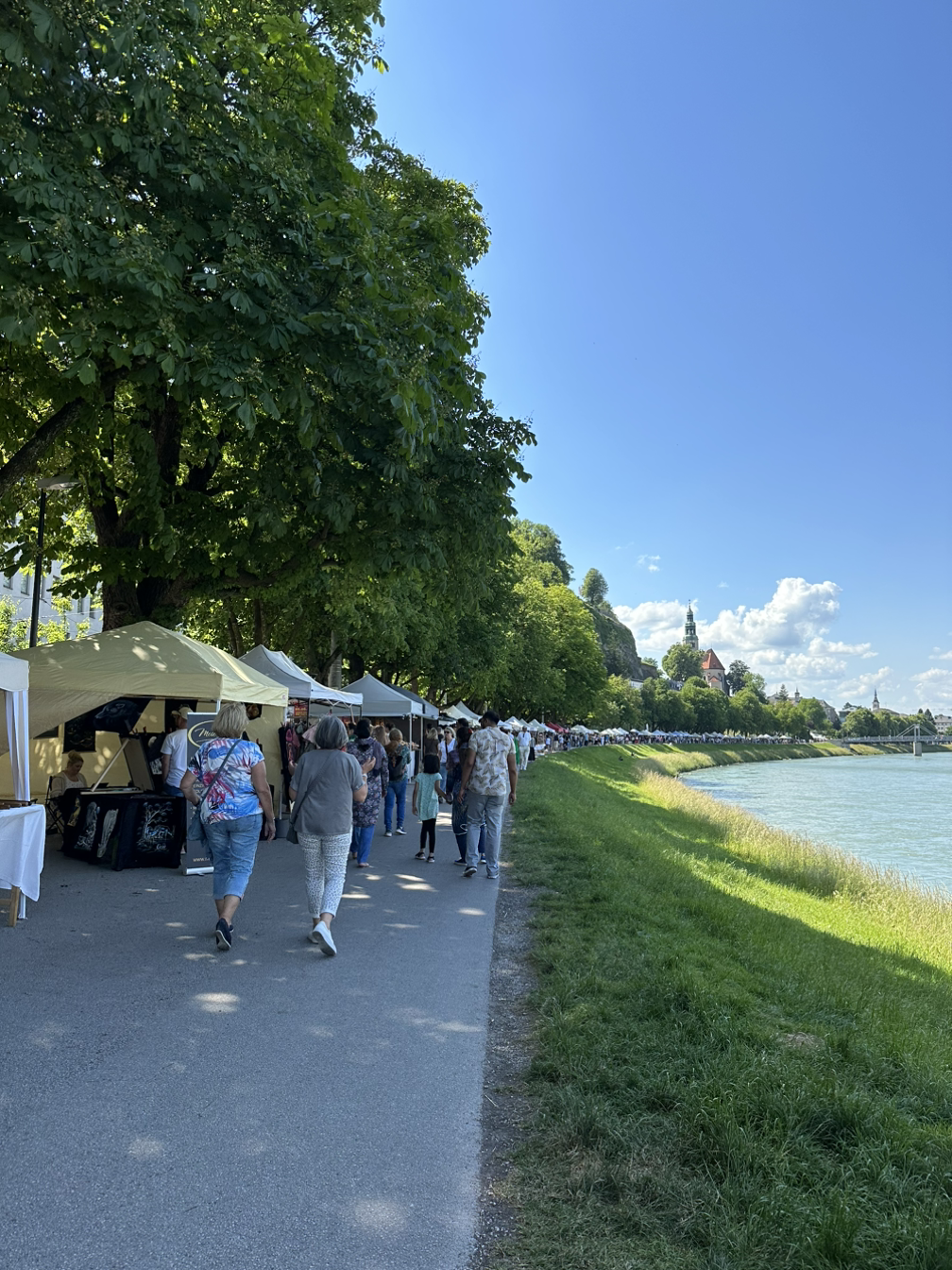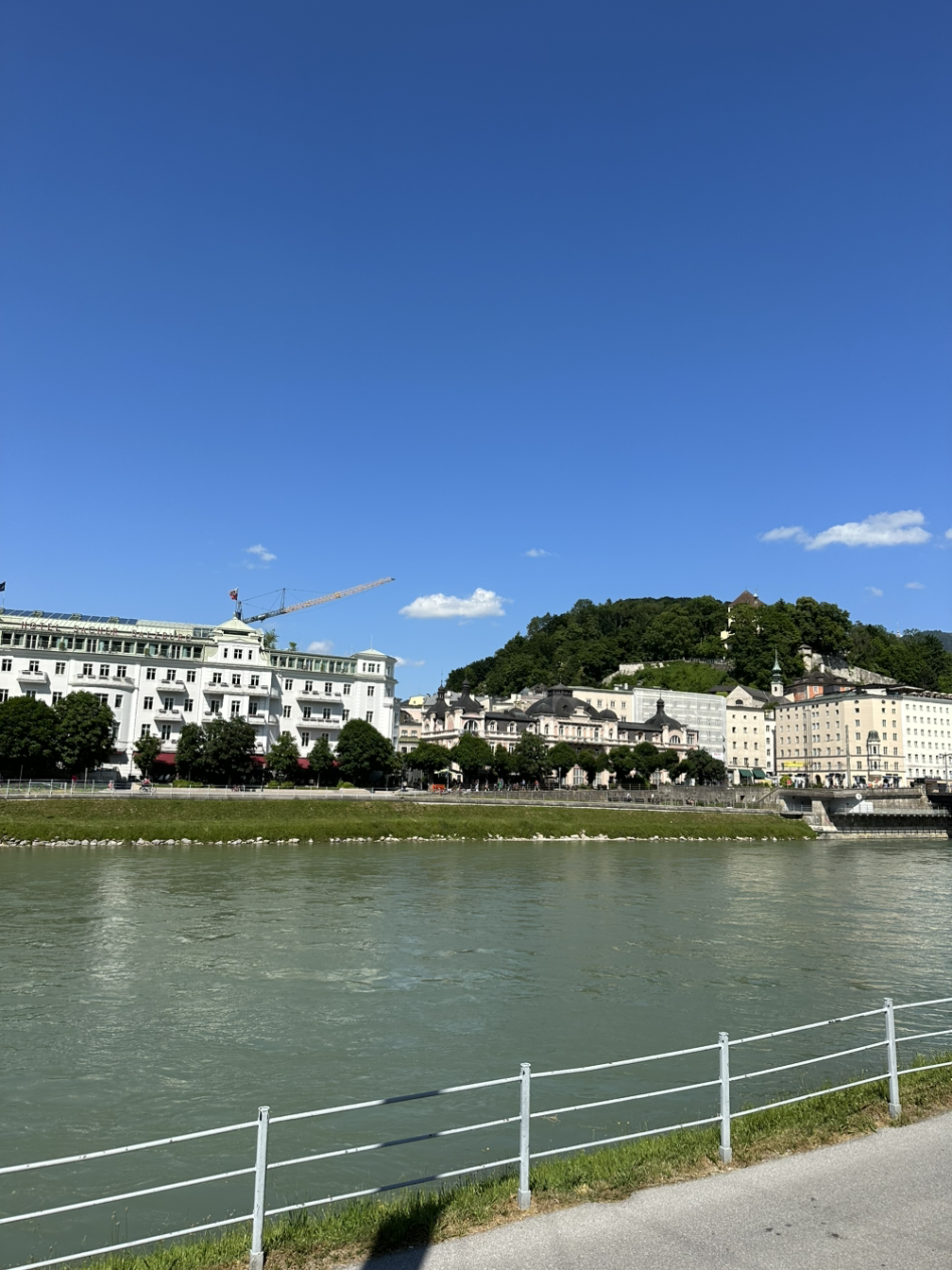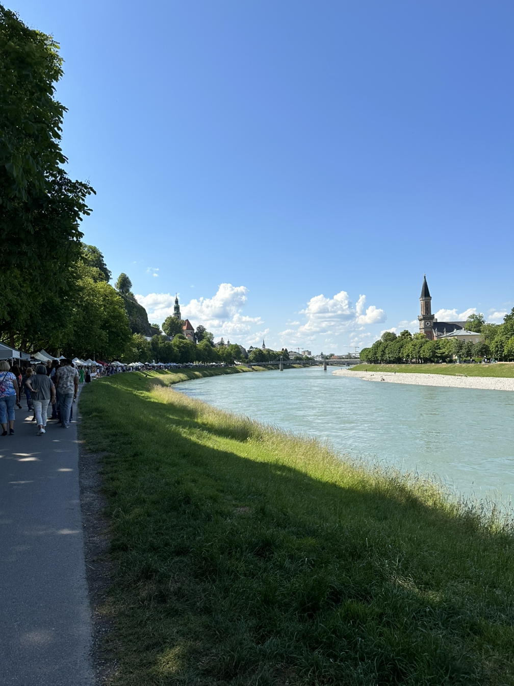잘츠부르크의 아름다운 다리를 건너 반대편의 명품 골목, 광장들이 있는 곳으로 걸어서 움직였습니다. 잘츠부르크의 다리에도 어김없이 영원한 사랑을 약속하는 열쇠들이 끼워져 있네요. (저도 저런 열쇠를 끼워 볼 날이 올까요...? ㅎㅎ 이런 거 잘 안 믿는 편이라 아마 없을 것 같네요.) 버스킹 하는 음악도 듣고, 다뉴브 강도 바라보고, 더운 날씨도 이겨가며 열심히 걸어 반대편으로 넘어왔습니다.