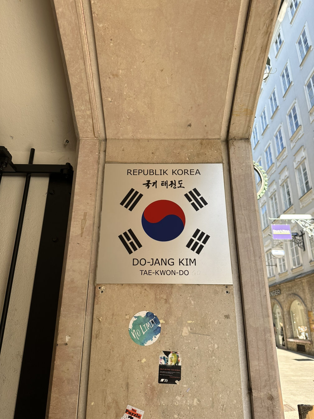 저희가 거닐었던 골목에서 아주 반가운 태극기도 만났습니다. 태권도를 가르치는 곳이었는데요. 당연히 쉬는 날이라 문이 닫혀있어 가볼 수는 없었지만 태극기를 보고, 한국이름을 보는 것만으로도 너무 반가워서 사진을 남겨보았습니다. (그리고 이 신기한 태권도 학원은 아래의 저녁 식사 이야기에 또 나올 예정이에요.ㅎㅎ)