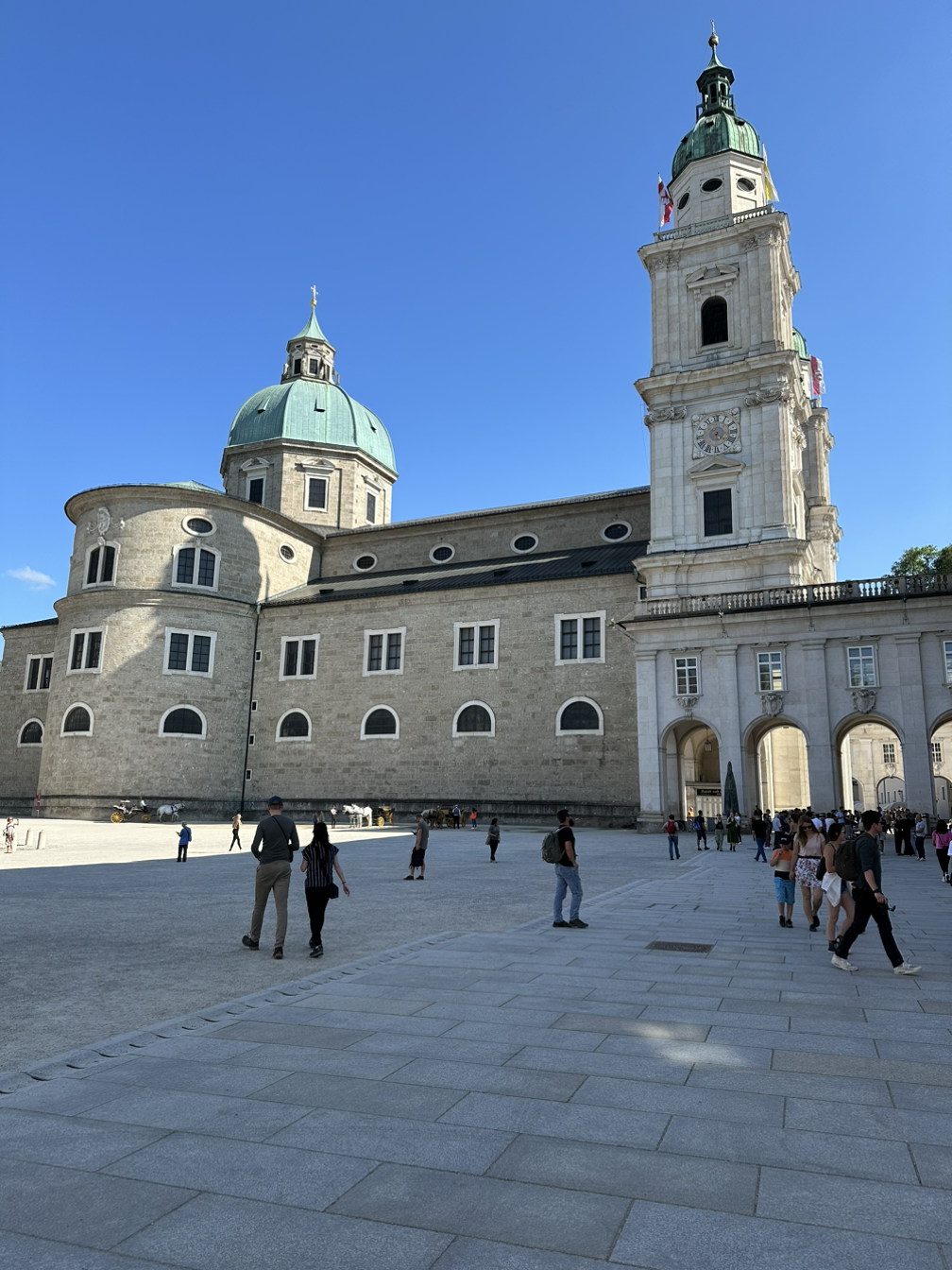 예쁘고 아름다운 거리들을 지나 잘츠부르크 음악종 탑 앞에 왔습니다. 이곳엔 광장처럼 아주 넓은 공간이 있어서 관광객이 많았고요. 조금만 더 아래로 내려가면 모차르트 광장도 있습니다. 음악종 탑 안으로 들어가면 또 새로운 공간들이 나와요! 단점은 매우 덥고, 매우 넓다는 것.ㅎㅎㅎ