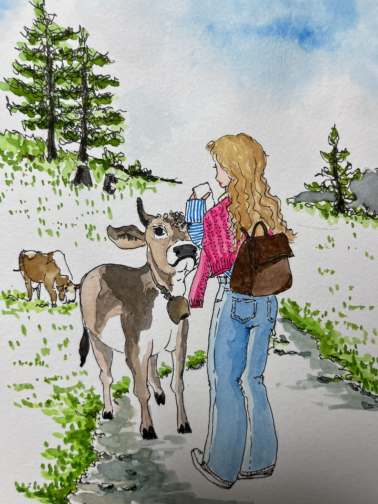 위의 사진에도 보이지만 정상에서 만난 송아지들을 보면서 송아지들과 동심으로 돌아간 시간을 보내기도 했어요. 신기한 것은 한 마리의 송아지가 계속 저를 따라오면서 제 엉덩이를 핥으려고 하는 것이 아니겠어요?ㅎㅎ 송아지가 예뻐서 더 같이 놀고 싶었는데 나중에는 너무 전투적으로 저를 따라와서 무서워서 도망을 갈 수밖에 없었습니다.