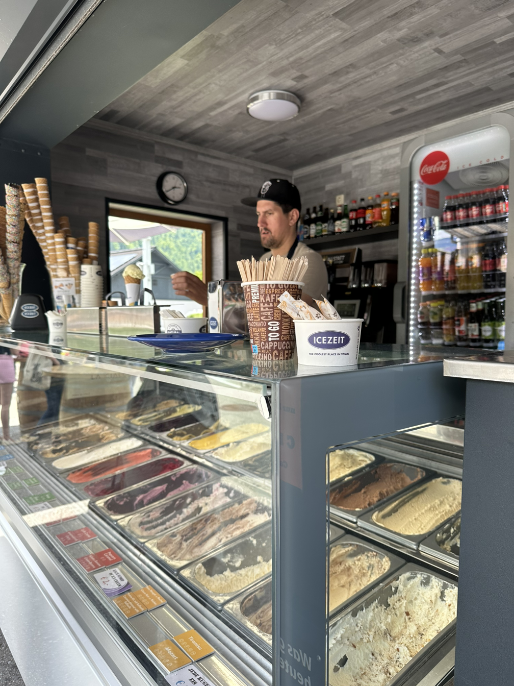 마을을 한 바퀴 다 돌고 주차장으로 가기 전, 오늘의 젤라토를 빼먹을 수 없죠. 특별히 이곳은 소금광산이 있어서인지 소금젤라토가 있다고 했는데 지금사진 작가님과 지노그림 작가님은 소금젤라토를 드시고, 저는 제가 먹고 싶은 맛을 뚝심 있게 골랐던 기억이 ㅎㅎㅎ 관광지라 그런지 그동안 사 먹었던 젤라토 중에 가장 비쌌던 기억이... 어쨌거나 젤라토는 언제나 옳습니다. 더운 날씨 덕분에 더 맛있게 먹었던 것 같아요.