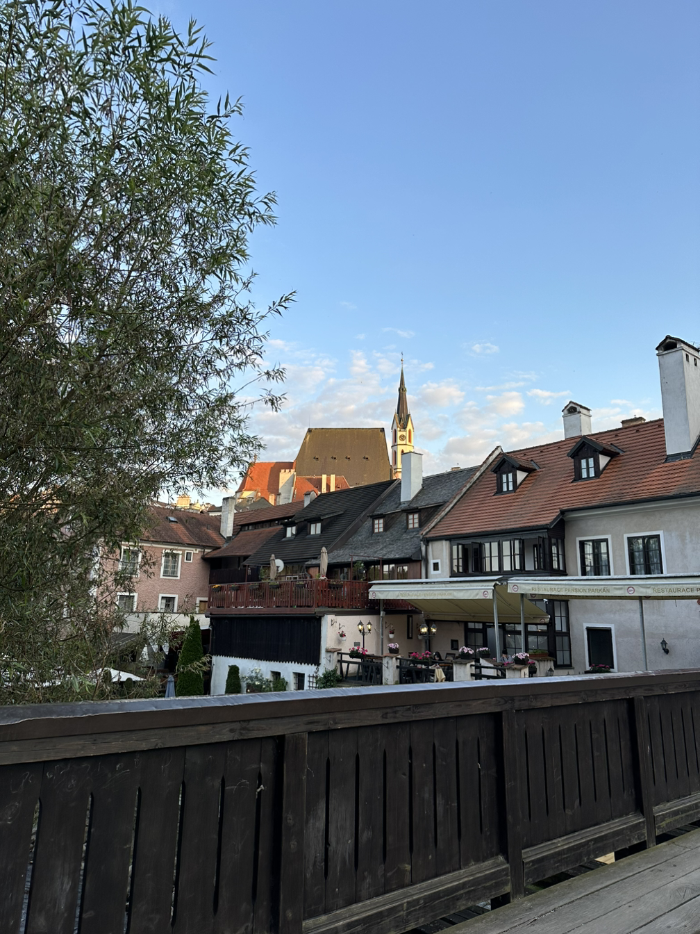 숙소에 짐을 풀고 우리는 구시가지로 저녁도 먹고 산책도 할 겸 내려갔습니다. 알록달록한 체스키크룸로프의 건물들은 한순간에 저를 동화 속에 들어온 것처럼 착각하도록 만들기에 충분했죠. 우리는 또 사진도 찍고 영상도 찍으며 시간을 보냈습니다.