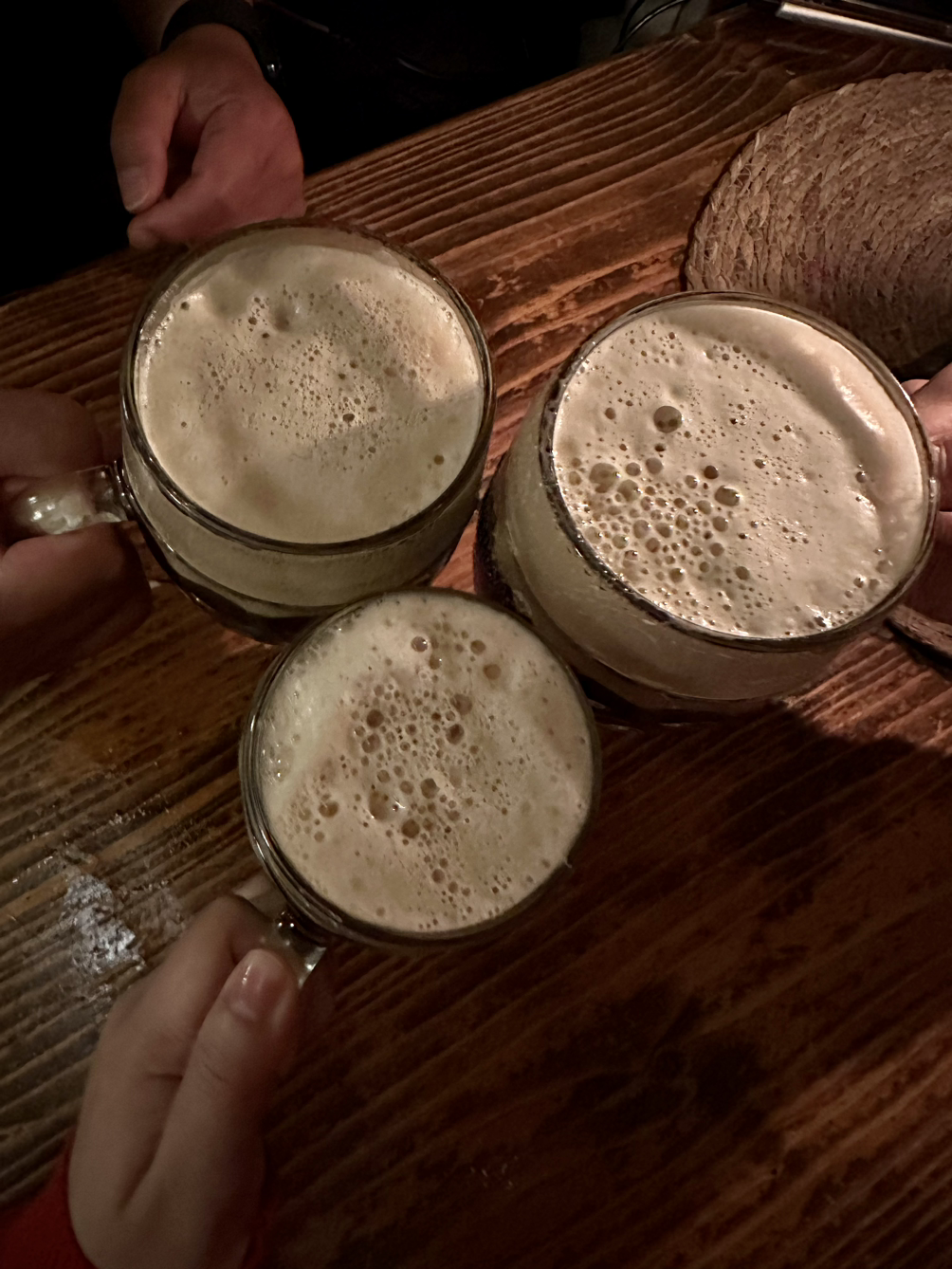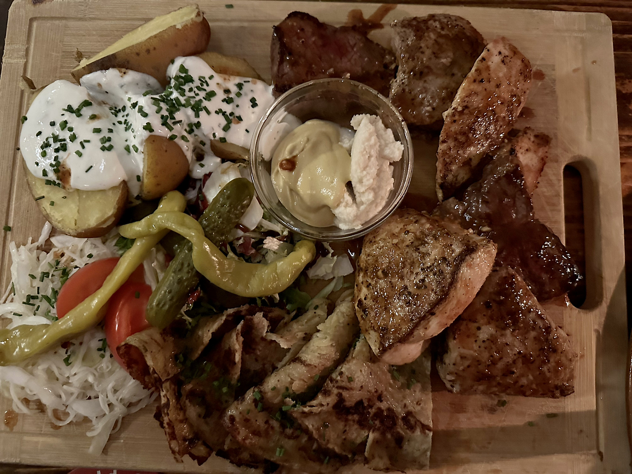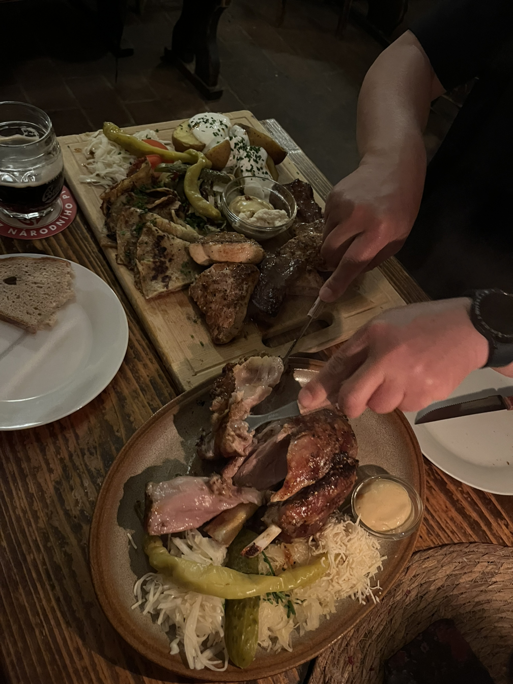 드디어 어제 미리 예약한 식당에 꼴레뇨와 모둠구이를 먹으러 왔습니다. 배가 많이 고프지 않았는데도 꼴레뇨는 아주 부드럽고 아주 맛있었어요. 왜 그렇게 줄 서서 예약하고 오는 줄 알겠더라고요. 생각보다 가격도 저렴했고요. 체스키크룸로프에 가신다면 꼭 한 번 가보시기를 강추합니다. 이 꼴레뇨와 함께 어제저녁에 먹었던 흑맥주도 한 잔씩 하면서 시간을 보냈습니다. 좌석이 좁지 않았다면 조금 더 있다가 왔을 텐데 좌석이 좁고 불편해서 얼른 먹고 일어났어요. 아쉽...ㅠㅠ