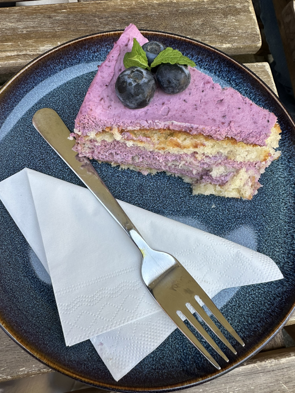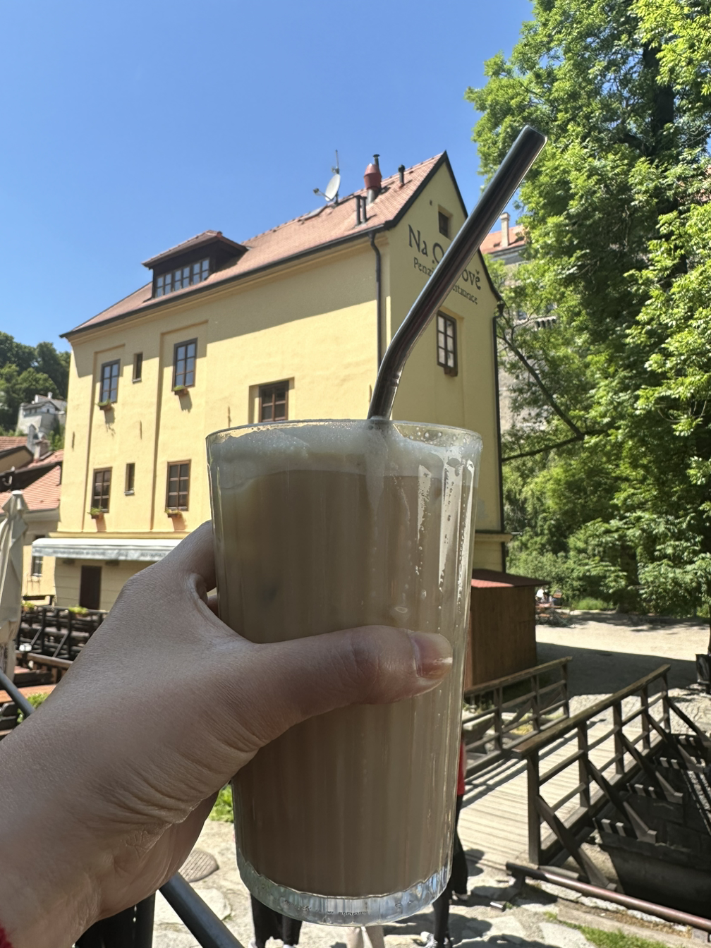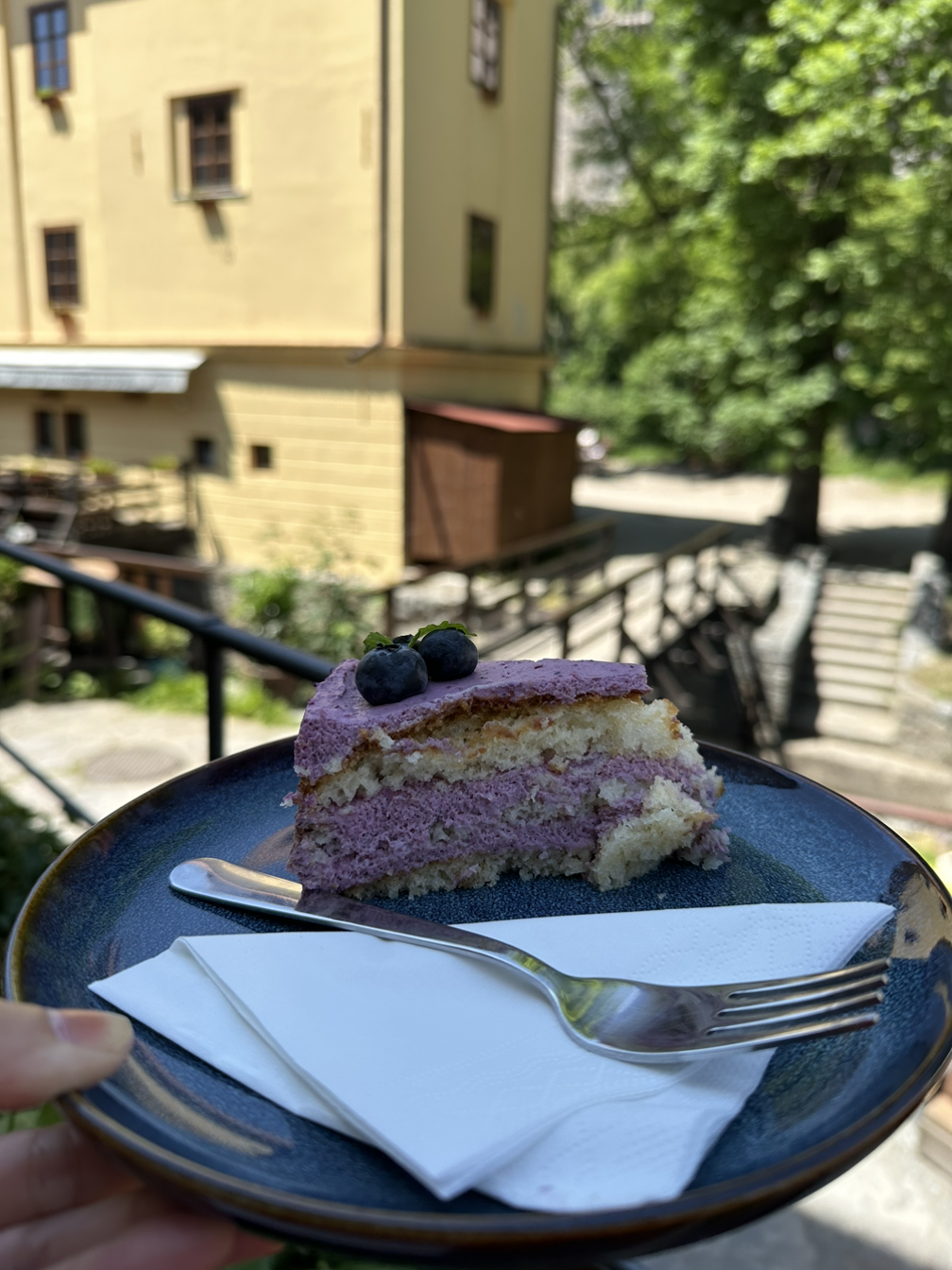 체스키크룸로프에서 가장 핫한 카페에 가보았어요. 오랜만에 아이스라테와 레몬치즈케이크를 주문했습니다. 사진에는 블루베리케이크로 보이지 않나요? 그래서 종업원을 불러 물어보았는데 레몬치즈케이크이라고 우기기에 그냥 알겠다고 했습니다. 안에 레몬치즈가 들어있다나 뭐라나.ㅎㅎ 뭐 또 까칠하게 따지는 성격은 아니라 그냥 먹습니다. 맛있었거든요.
