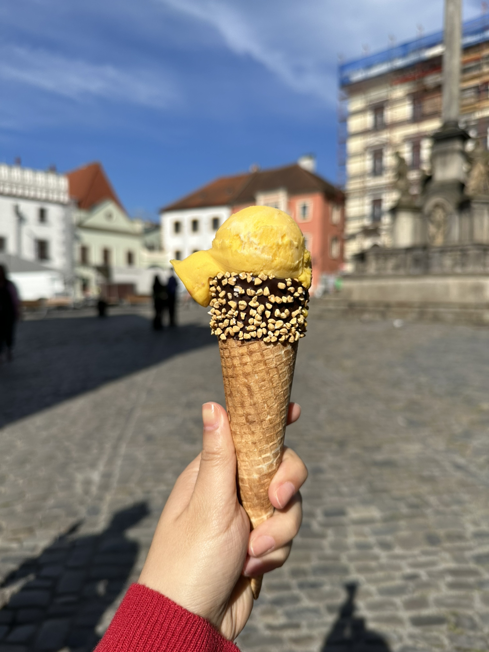 뜨거운 햇살을 가득 받으며 돌아다녔으니 젤라토 하나 먹어줘야겠죠? ㅎㅎ 구시가지 광장에 있는 젤라토 가게에서 망고 젤라토를 선택! 저녁을 예약한 시간까지 아직도 시간이 남아서 광장에서 젤라토를 먹으며 시간을 보냈습니다. 사진도 찍고, 영상도 찍고요. ㅎㅎ 젤라토 하나에 행복을 느끼는 걸 보면 사실 세상 살면서 그렇게 심각할 일도, 내 인생을 뒤 흔드는 일도 전부 내 마음에서 만든다는 생각을 해봅니다. 그래서 이제부터는 조금 더 마음을 가볍게 살기로 했어요.