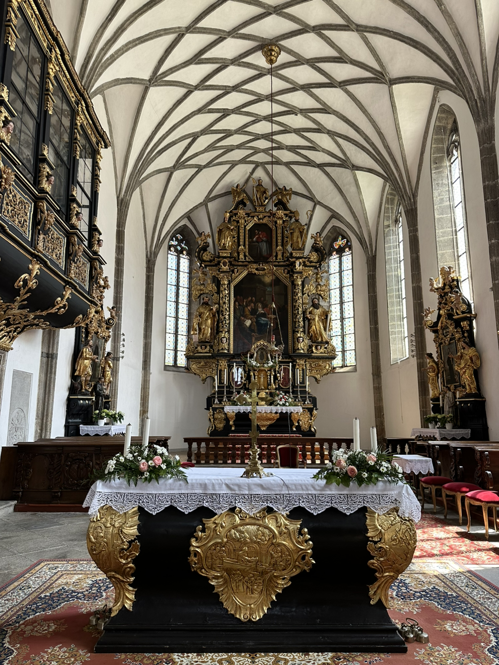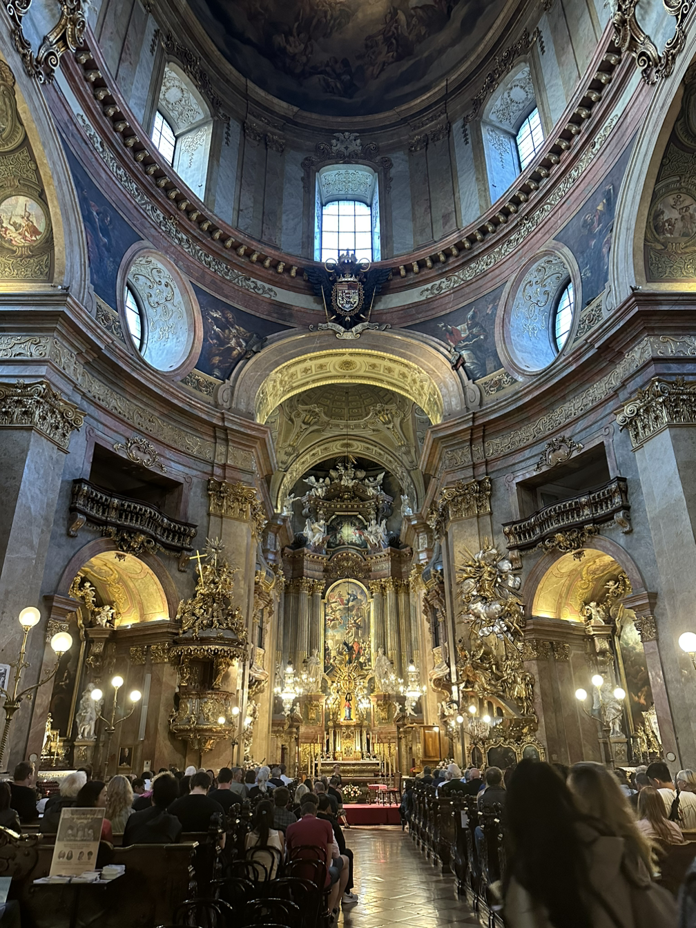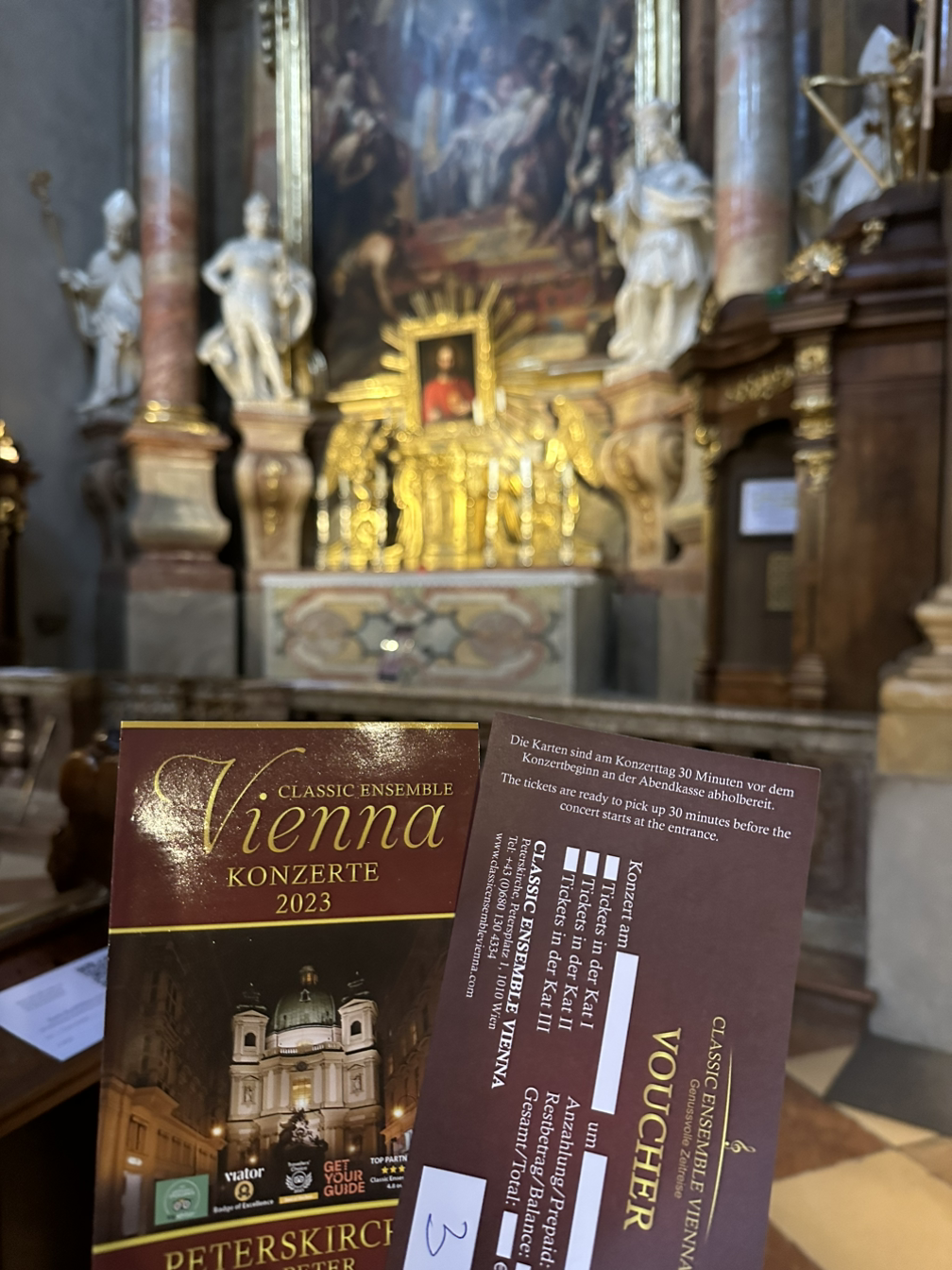 구시가지를 돌아보다가 예쁜 성당이 보여서 들어가 보았는데요. 사람들이 많이 들어가길래 따라 들어간 것도 있었어요. 마침 음악회를 하는 것이 아니겠어요? 비엔나에 오기 전 우리 모두 음악회 한 번은 봐야 하지 않겠냐는 이야기를 했었는데, 보통 이런 곳의 음악회는 티켓을 미리 예매해야 하기도 하고 드레스코드를 맞춰가야 해서 포기했었거든요. (거창한 드레스코드는 아니어도 재킷을 걸쳐야 하는 정도는 매너로...^^) 그런데 현장에서 티켓을 살 수 있다고 하더라고요. 그래서 얼떨결에 음악회를 즐기게 되었습니다.