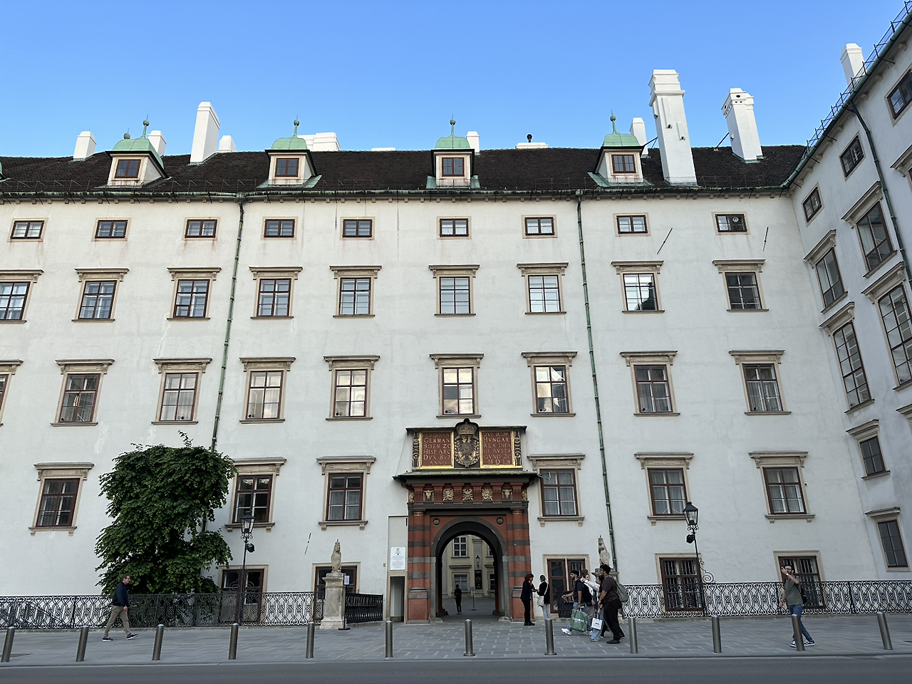 이곳은 호프부르크 왕궁인데요. 정말 화려한 보르크 양식의 인테리어가 한눈에 봐도 딱 보이죠? 이 안으로 들어가야 구시가지로 들어갈 수 있습니다. 그런데 사진에 다 담기지 않을 만큼 정말 웅장해요. (이 말은 너무 넓고 커서 많이 걸어야 한다는 뜻^^) 풍경이 아름다운 도시에 있다가 정말 큰 건축물들이 있고 사람이 많은 도시에 오니까 정신이 없어서 적응하는데 시간이 좀 걸렸습니다.