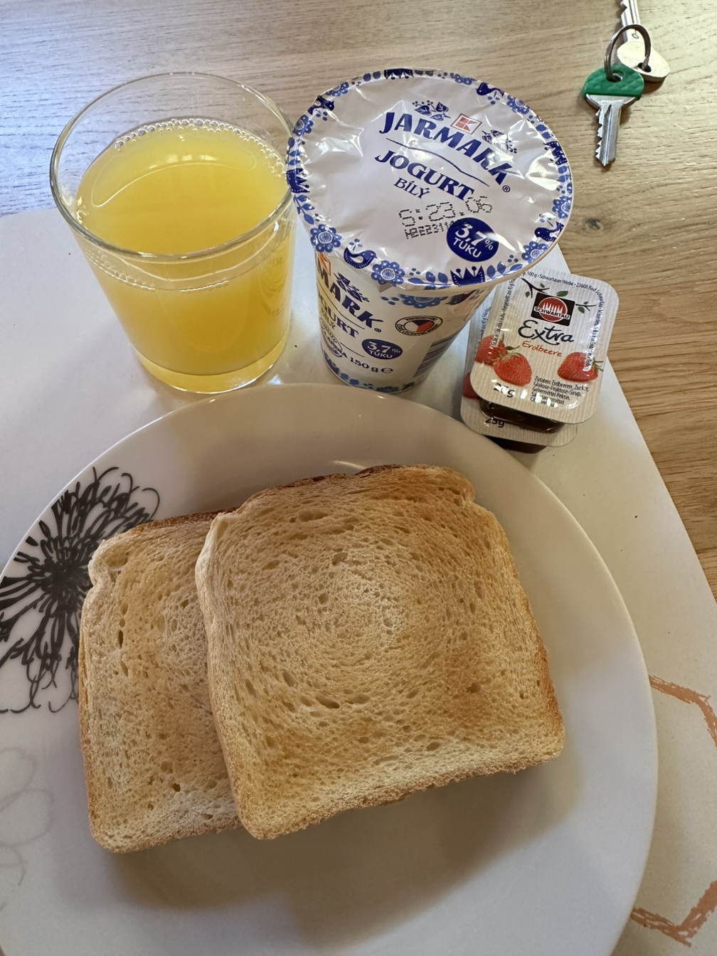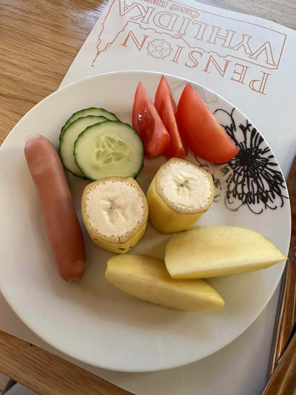 이틀째 먹는 조식입니다. 이번 여행 중에 체스키크룸루푸에서만 조식이 나오는 숙소였거든요. 나머지는 저희가 알아서 빵과 커피 정도로 해결하거나 과일을 조금 먹거나 했었어요. 그러나 이 집은 유럽 치고는 조식맛집... 저는 커피와 토스트, 요구르트와 과일 정도로 아침을 시작해 보았습니다. 저는 어느 나라를 가도 토스트와 요구르트, 커피 한 잔으로 아침을 시작해요. 왜냐하면 일어나서 바로는 밥을 잘 못 먹기 때문에...ㅎㅎㅎ