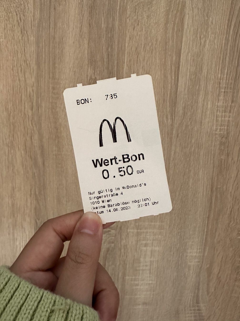 음악회를 다 보고 나오니 밤 10시가 다 되었는데요. 쌀쌀해진 날씨와 감기기운이 있는 지노그림 작가님을 위해 맥도널드에서 따뜻한 티를 사고, 저와 지금사진 작가님은 아이스커피를 마시며 화장실도 잠시 들렀습니다. 맥도널드 화장실도 0.5유로를 내야 들어갈 수 있었는데 신기하게 저렇게 영수증을 줍니다. 그리고 주문할 때 가져가면 주문한 메뉴에서 0.5유로를 깎아줍니다. 메뉴로 리펀드를 해주는 것이죠. 다시 돈으로 주지는 않아요. 결국 저희는 미리 주문을 한 관계로 리펀드를 받지 못하고 저 영수증을 고이 한국까지 가져왔습니다.ㅎㅎ 다음에 가면 꼭 써먹을 거야...ㅎㅎㅎ