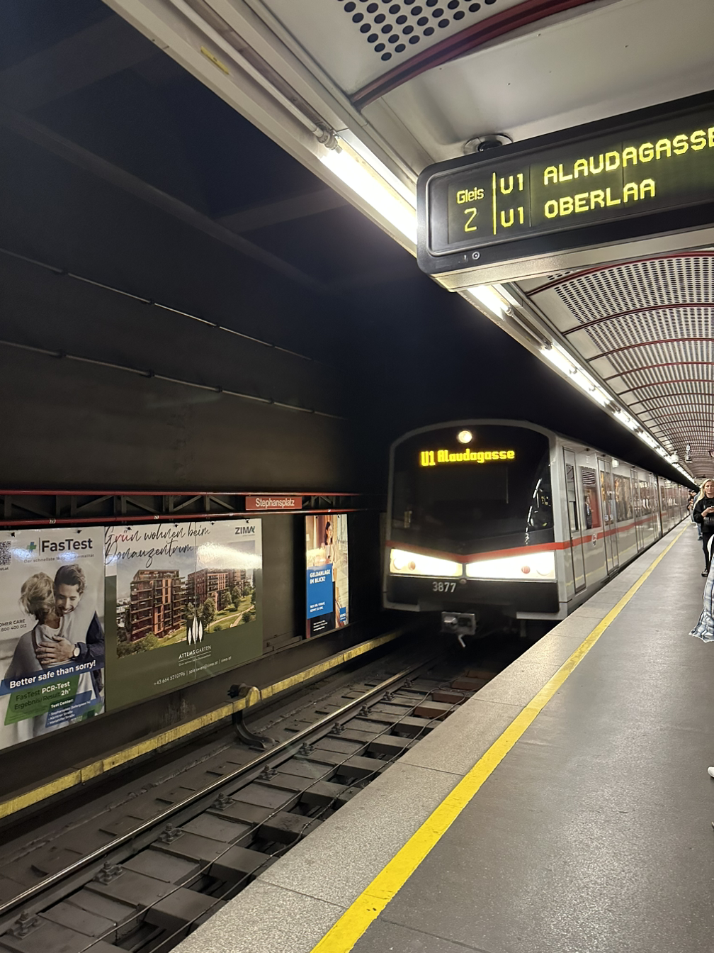 구시가지에서 돌아오는 길은 지하철을 타기로 했어요. 슈테판 성당 바로 앞에 지하철역이 있었고, 한 번에 숙소까지 갈 수 있었기 때문이에요. 비엔나의 지하철은 친절하지 않아서 역을 놓치지 않도록 집중하며 와야 했습니다. 언제나 해외에서는 트램보다 지하철이 더 어려운 것 같은 느낌스. 마지막 사진은 저희 호텔이 있는 역의 사진이에요. 저희가 숙소를 아주 잘 잡아서 비엔나 중앙역에서 지내게 되었죠. 비엔나 중앙역은 지하철, 트램, 유레일, 공항철도까지 다 연결되어 있어서 이동하기 아주 편리했어요.