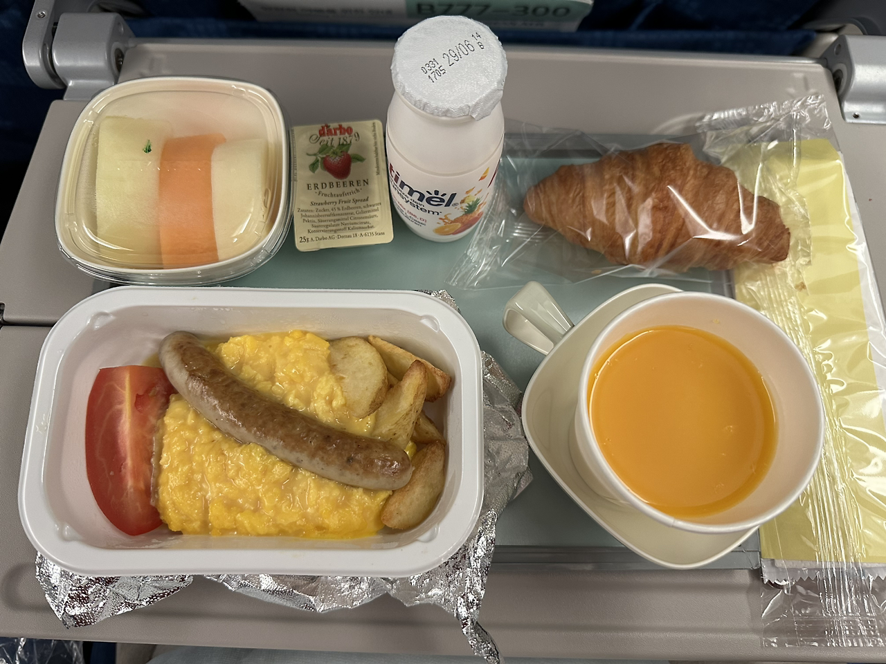 한국 도착 2시간 정도 남았을 때, 과일과 오믈렛이 나왔고요. 저는 과일과 요구르트만 맛있게 먹었습니다. 이제 거의 도착할 시간이라 맥주나 와인은 마시지 않았어요. 거의 뜬 눈으로 비행을 했던 저는 이 오믈렛을 먹고 나서야 조금 잠에 들 수 있었습니다. 역시 장거리 비행 전에는 꼭 밤을 새우고 타야 한다는 거...ㅎㅎㅎ