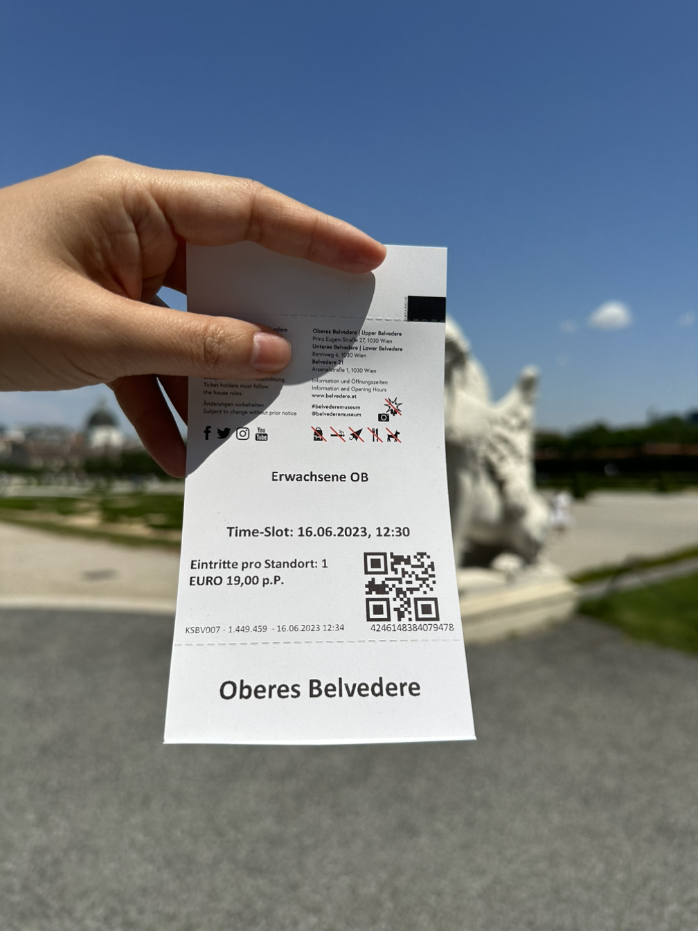 저희는 가고 싶었던 미술전시를 보기 위해 벨베데레 궁전으로 자리를 옮겼습니다. 벨베데레 궁전은 아주 넓은데요. (이 나라는 뭐든 넓고 큽니다. 체력을 많이 비축해서 가야 해요.ㅎㅎ 그늘이 많이 없다는 것도 참고하셔서 선글라스 필수!) 이 궁전은 유네스코 세계유산으로 등재되어 있기도 합니다. 궁전의 내부는 현재 미술관으로 사용되고 있어요. 미리 예매를 하지 않은 관계로 지노그림 작가님은 줄을 서서 티켓을 구입하고, 저는 그 옆에 있는 기념품샵에서 기념품을 구경하고, 지금사진 작가님은 야외에서 사진을 찍었습니다. 이제 각자 잘 놀아요. ㅎㅎ