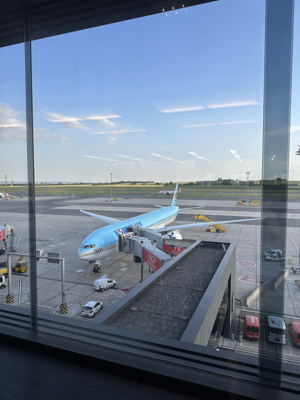 탑승을 기다리며 찍은 비행기입니다. 곧 저희가 탑승하게 될 비행기였는데요. 저는 항상 비행기를 타기 전에 이 자리에 서서 사진을 찍곤 하는데 그때의 감정들이 매번 다른 것 같아요. 어떨 때는 정말 눈물이 뚝뚝 흐를 만큼 슬프기도 했고, 어떤 날엔 후련하기도 했고, 어떤 날엔 행복하기도 했습니다. 비행기를 탈 때의 여러 상황에 따라 제 감정이 반응한 것이겠지만 '비행기'가 주는 떠남에 대한 생각들이 더 극대화되는 장소가 바로 이곳 아닐까 생각해 봅니다.