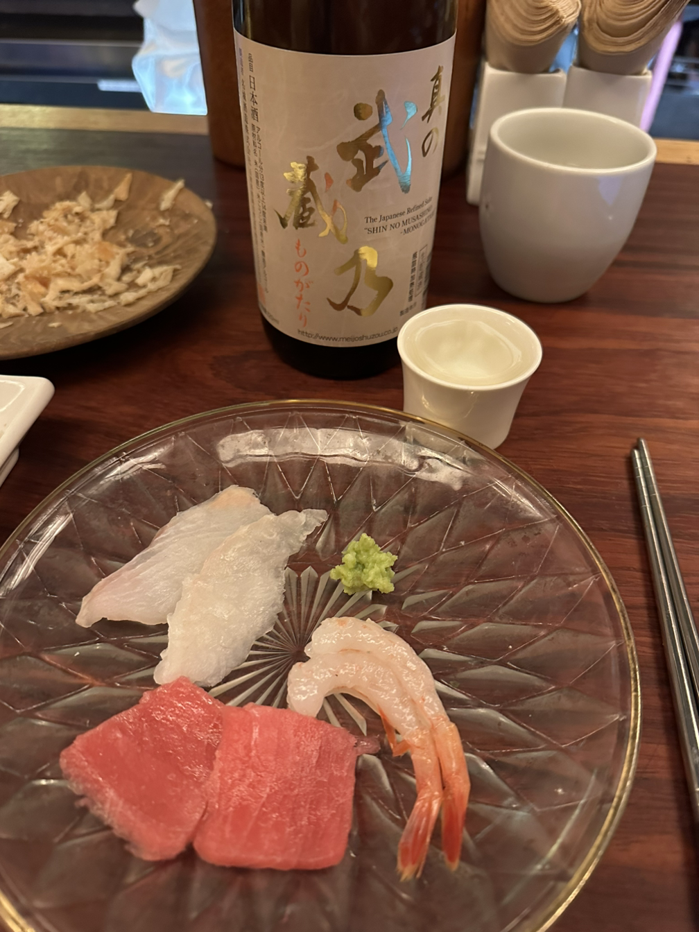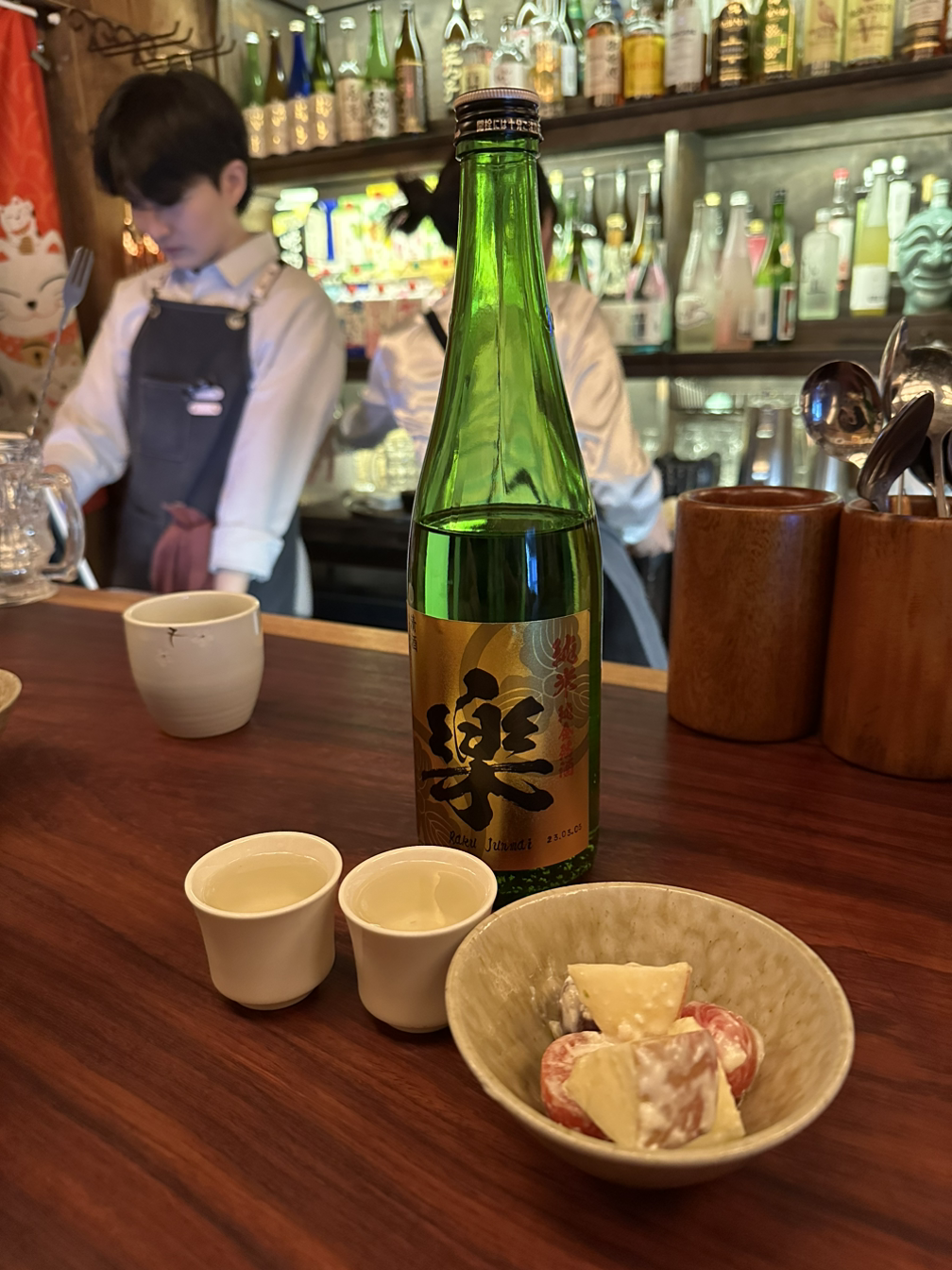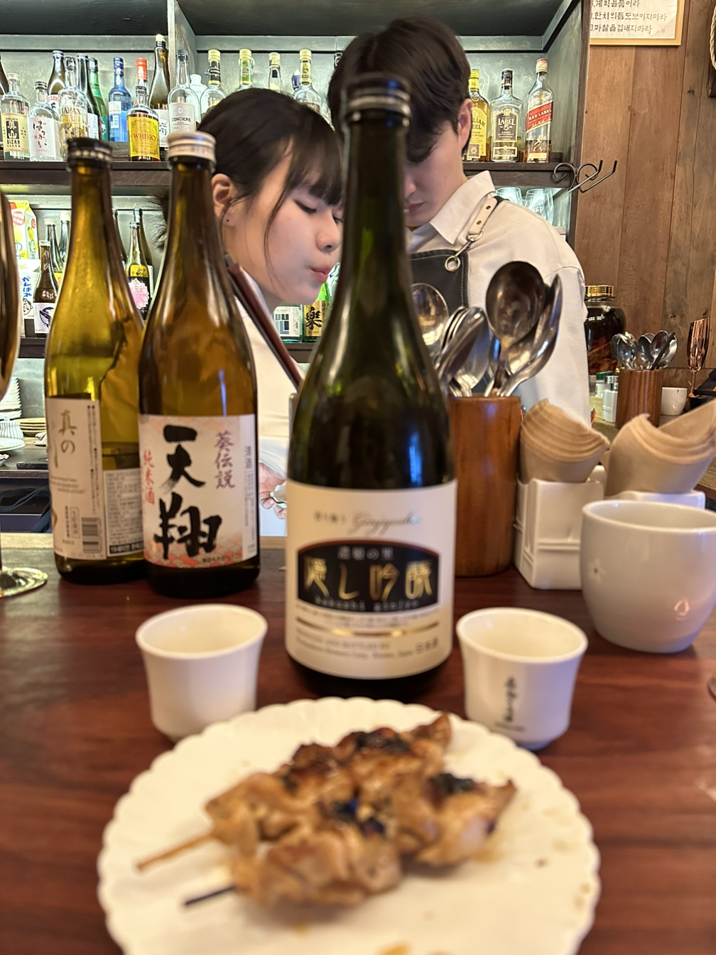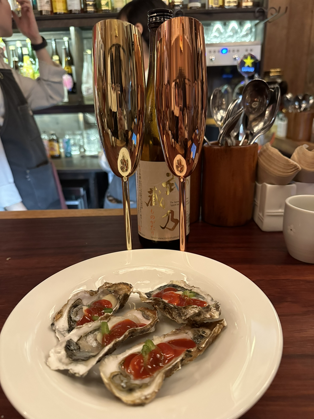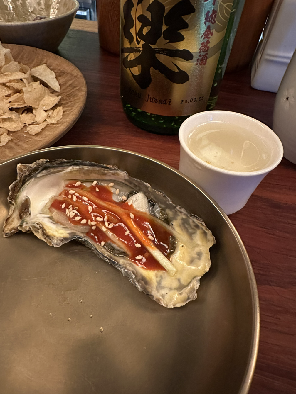 또 다른 날의 연말 모임입니다. 이곳은 이자카야 오마카세라는 아주 특이한 곳이었어요. 2시간 동안 사케, 맥주, 하이볼 등등 원하는 술을 마음대로 시켜서 먹을 수 있고요. 그래서 술을 잘 마시는 사람은 아주 많이 마실 수 있지만 술이 약한 분들에게는 비추하는 곳입니다.ㅎㅎ 안주는 10분에 한 메뉴씩 나오고, 맛있었던 메뉴가 있다면 또 달라고 하면 더 주기도 합니다. 저희는 석화가 맛있어서 더 달라고 했더니 4피스나 더 주셔서 사케를 아주 맛있게 먹었어요.ㅎㅎ