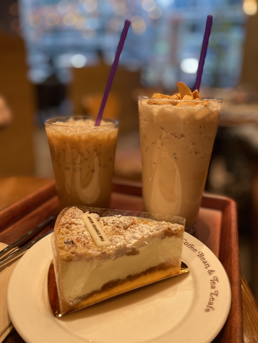 그래도 이 날은 양심이 있었는지 해장을 커피로 했습니다. 커피빈에 나온 케이크인데 애플시나몬치즈케이크이거든요? 제가 원래 애플파이를 좋아하는 것도 있어서 그럴 수 있겠지만 저 케이크 강추합니다! 부드러운데 정말 맛있어요. 사과와 시나몬과 치즈의 조합이 환상적이었던 맛! 시원한 커피와 케이크를 마시며 하루를 잘 마무리했다고 합니다. 이제 당분간 술은 안 먹고 정신 똑띠 차리고 살겠다고 다짐하며 집으로 들어갔는데...
