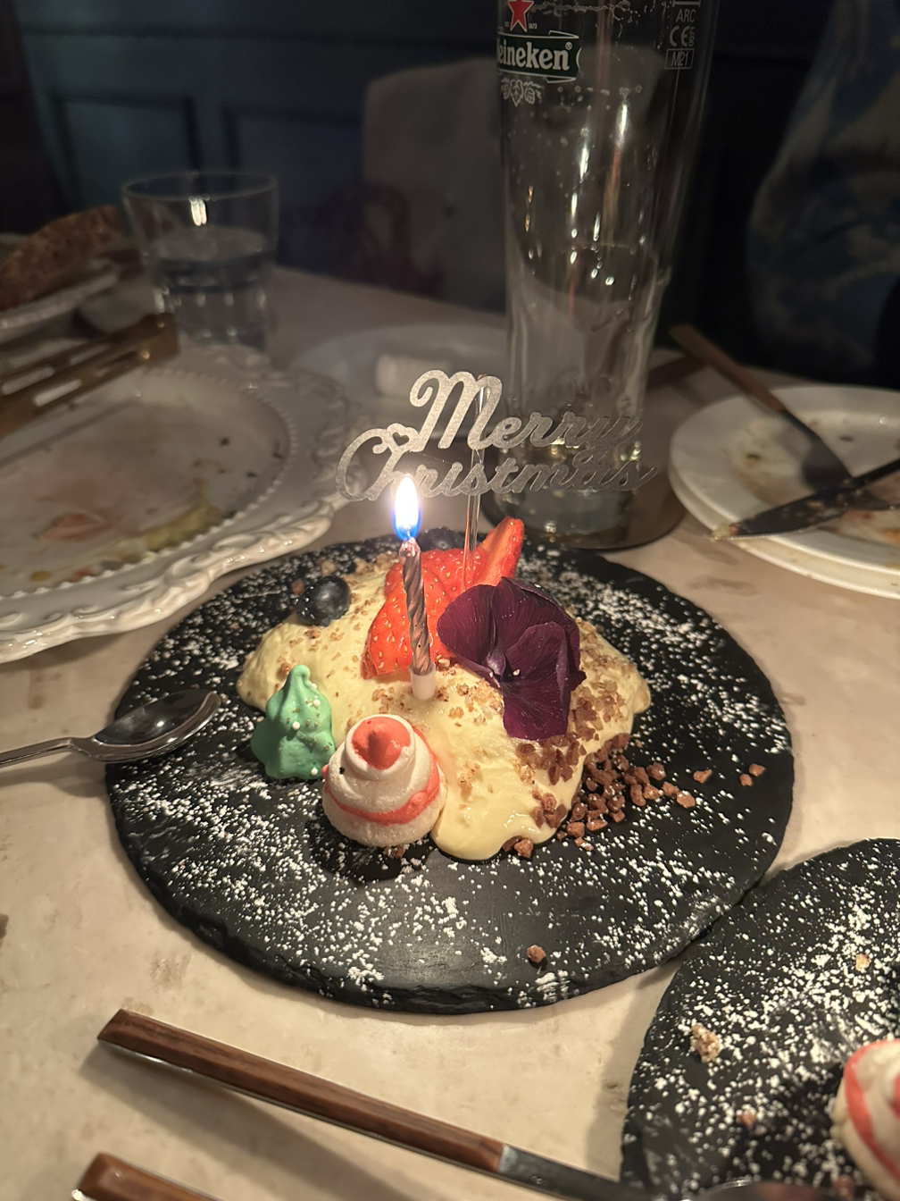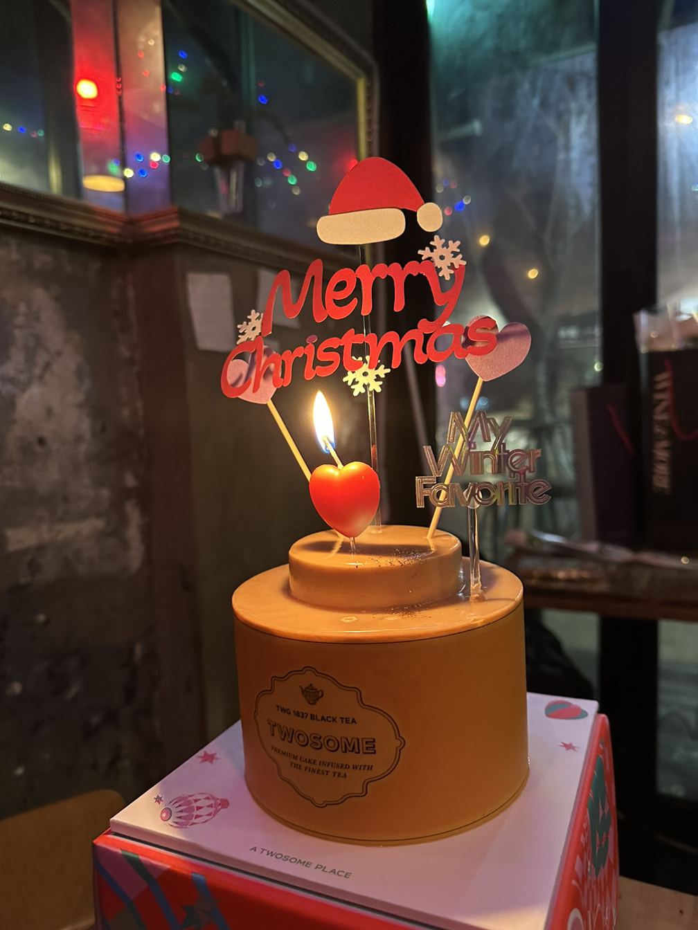자리를 옮기자마자 케이크에 불 붙이고 메리크리스마스를 외쳤습니다. 사실 외국명절을 우리가 왜 챙기고 있는 것인지... 가끔 헷갈릴 때도 있지만ㅎㅎㅎ 기분은 좋은 것 같아요. 그리고 이 술집은 술만 팝니다. 안주는 팝콘 딱 하나밖에 없어요. 그래서 케이크를 먹어도 뭐라고 하지 않아서 더 좋았던 것 같아요.ㅎㅎ(밥 안 먹고 먹으러 가는 건 비추! 안주가 없기 때문에 ㅎㅎ)